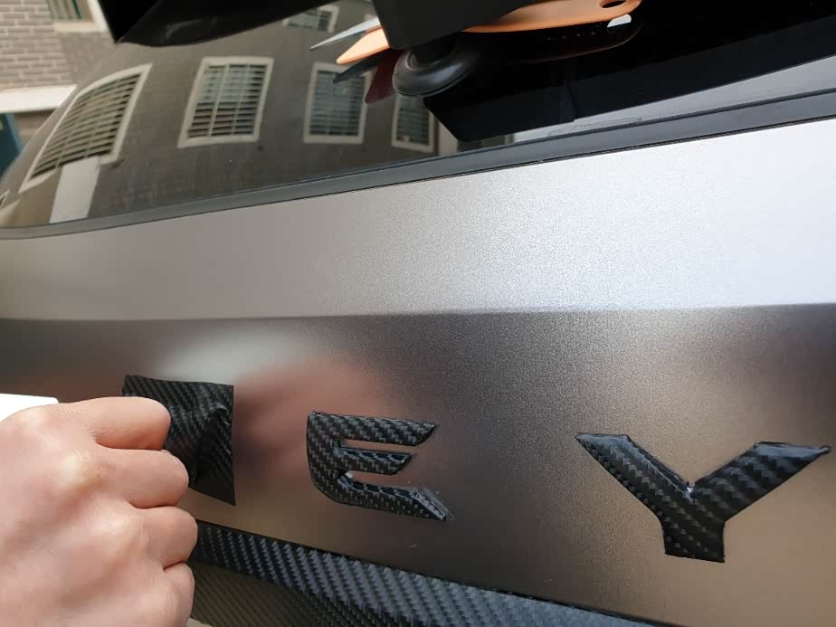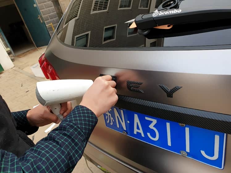 先把屁股贴了,再把行李架贴了,再把窗沿贴了,最后再把闪电贴了,必须贴闪电,还有点纸,车身侧边下沿贴了,最后把wey贴了!