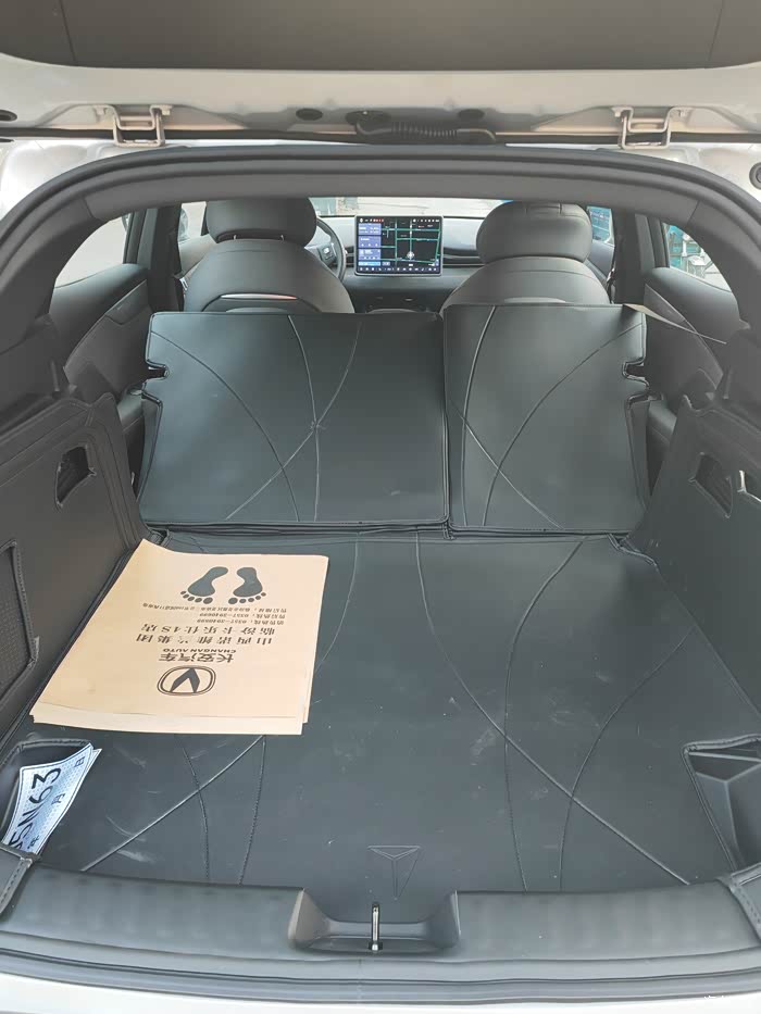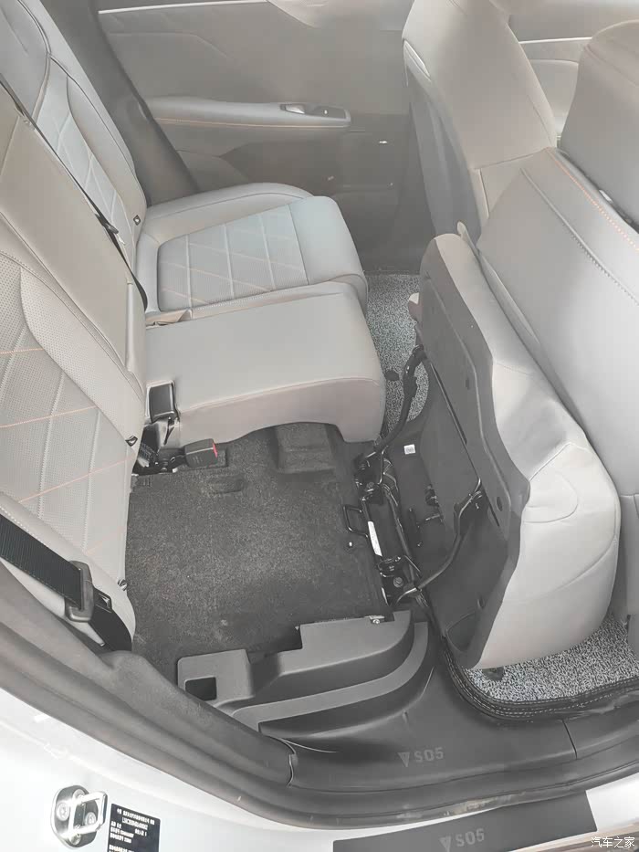 再来说说深蓝s05的储物空间吧,深蓝S05有个超大的前备箱,容积是159L。这个前备箱的打开方式跟油车的打开方式是一样的,平时放点不常用的随车物品,如果是长途旅行的就派上大用场了,可以放大概两个21寸行李箱,还可以放点电脑包什么的。深蓝S05的后备箱日常是490升,空间还算可以,最好的是后备箱底部可以掀开,里面有放三角架,反光背心,补胎工具,这个地方的空间也很大,可以把灭火器,充气泵,还有随车充,放电枪放到里面,这样后备箱里面就不杂乱了,深蓝S05的后排座椅是可以放到的,平时拉一点大件物品,长一点的物品,后排座椅放到就是够用了。深蓝S05的后备箱是可以放到纯平的,把后排座椅向前翻折,就可以把后排靠背放平,这样就是一张大床的了,真的是纯平啊!170的人可以轻松躺下,如果把副驾座椅放到最前,把后排右侧的坐垫翻到上面,就可以做个枕头,180的轻松躺下。