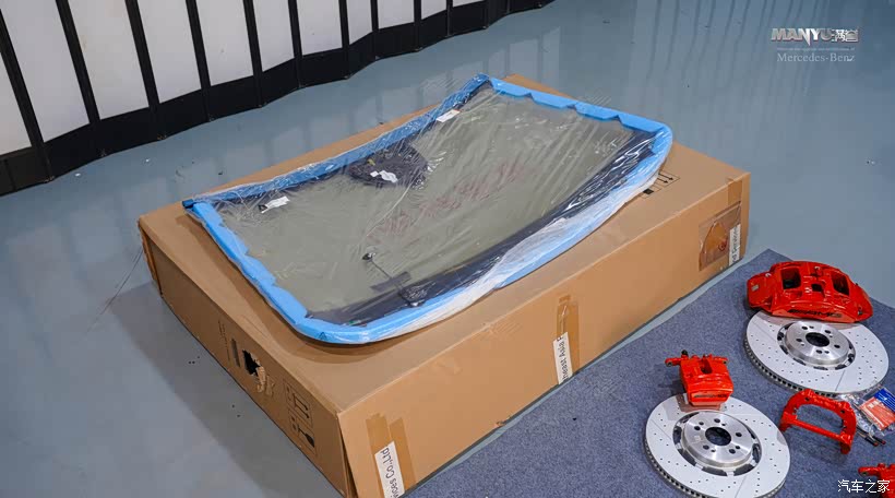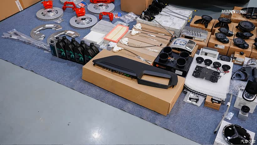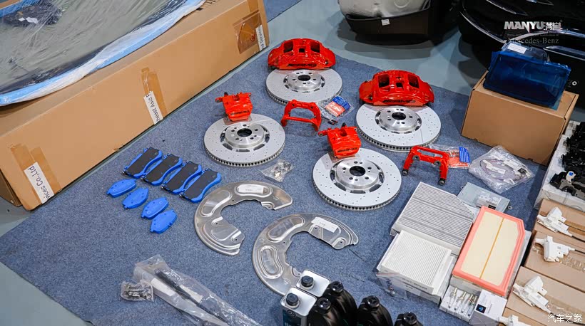 ▲ 原厂前六后一配件清单:原厂AMG前六活塞、原厂AMG后单活塞、原厂刹车盘、后卡钳支架,前护板,油管,endless刹车皮,原厂刹车油