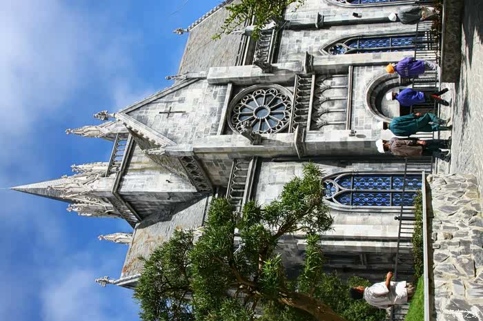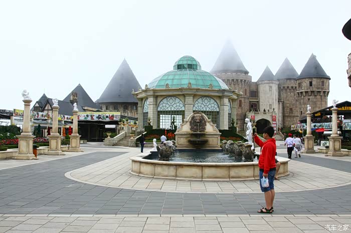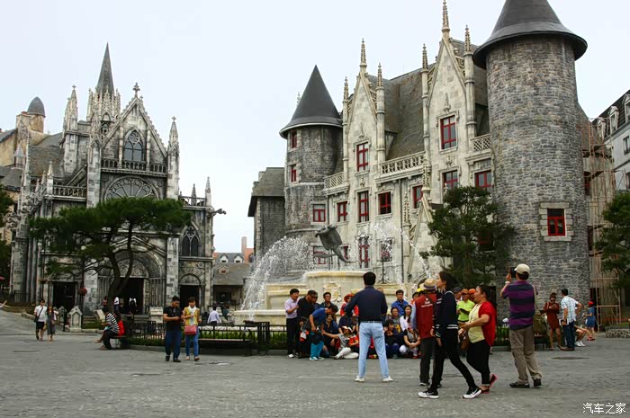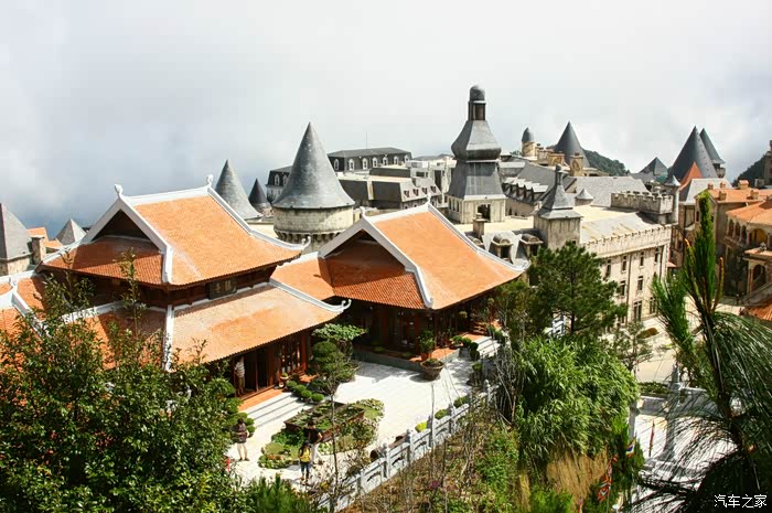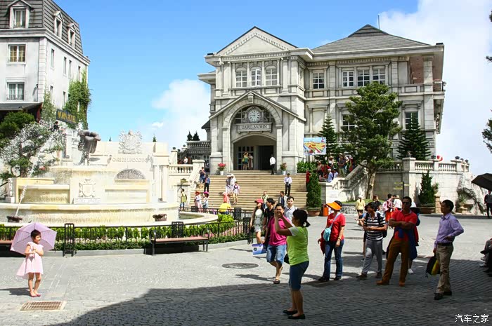 到巴拿山去玩的多数为越南人,还有一些中国、韩国的游客,鲜有西方人。乘缆车上山,云雾缭绕,景色还算迷人,更兼有瀑布遥挂山间,颇为壮观。山顶是人造景观,西式建筑和东方建筑庙宇在一起,倒也和谐。山顶气温宜人,是避暑的好地方。这类景点,虽可一游,但总感觉没什么特点。好玩比不过马来西亚的云顶,好看比不过中国的名山。