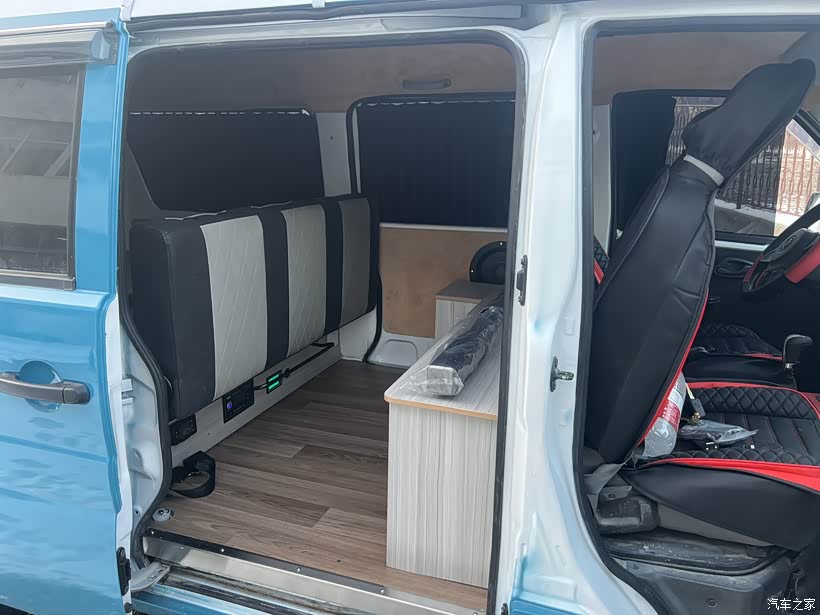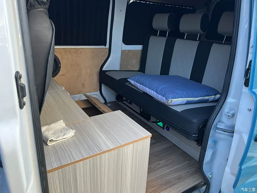 目前车顶车筐已加,音响喇叭完工,回音壁还没找到好位置。倒车影像行车记录仪中控已加,4度电柴暖已加。车窗帘,全车隔音保暖止震已改好,地板,折叠座椅,前座椅坐垫,脚垫,把套等都已经完工。目前就是看看其它细节问题就差不多完活了
