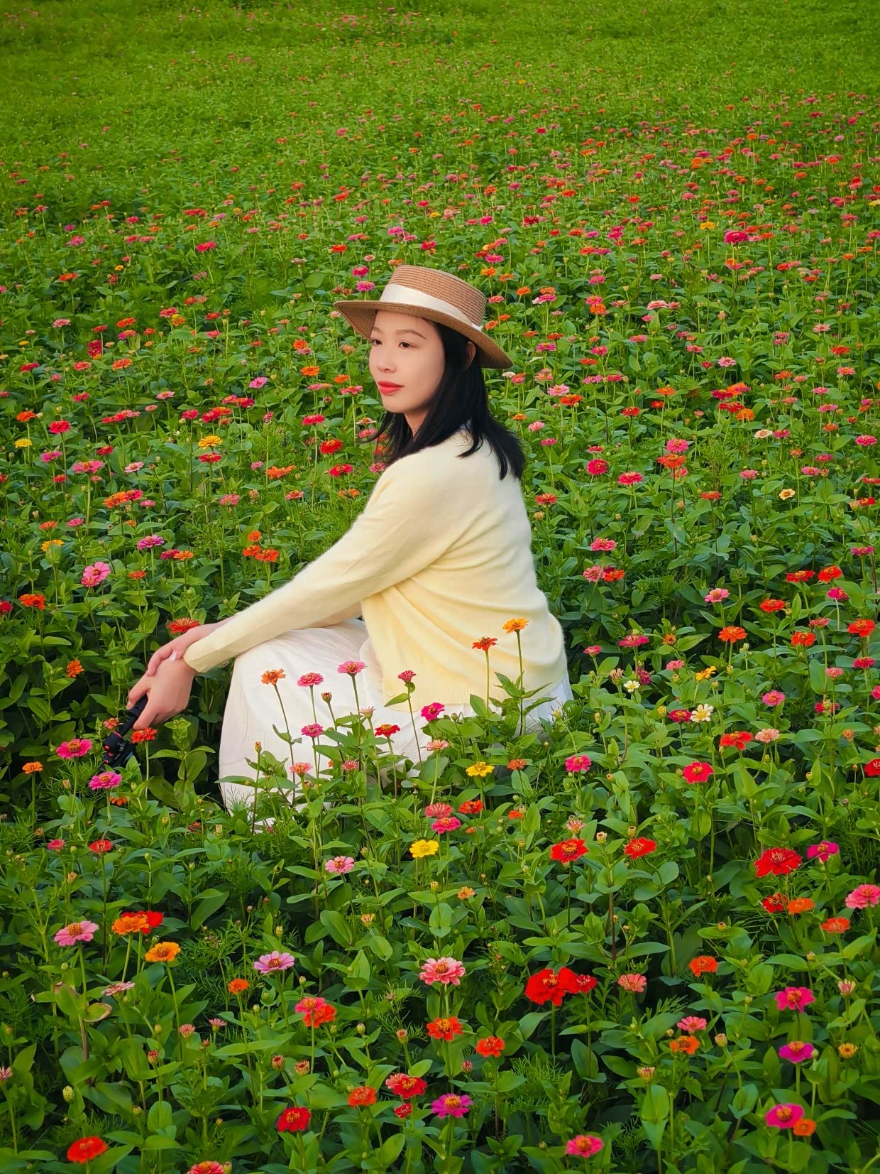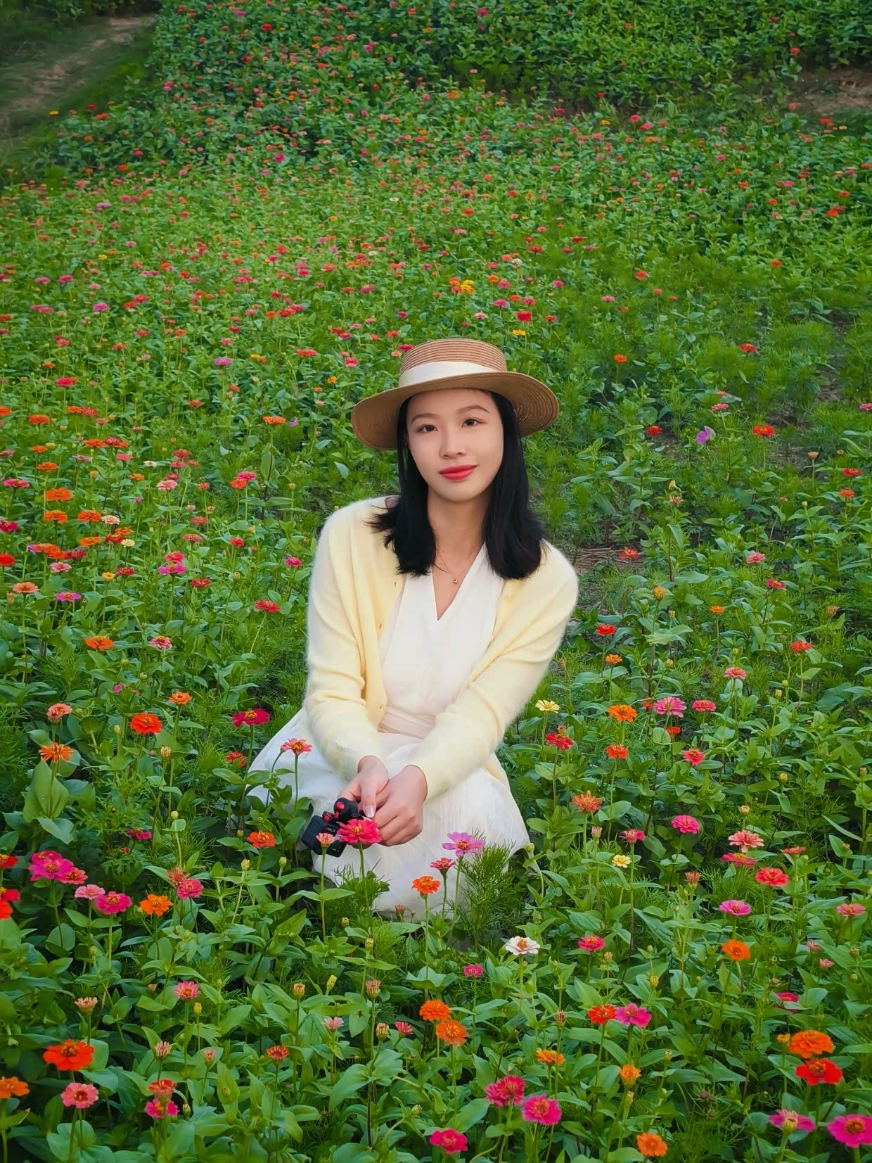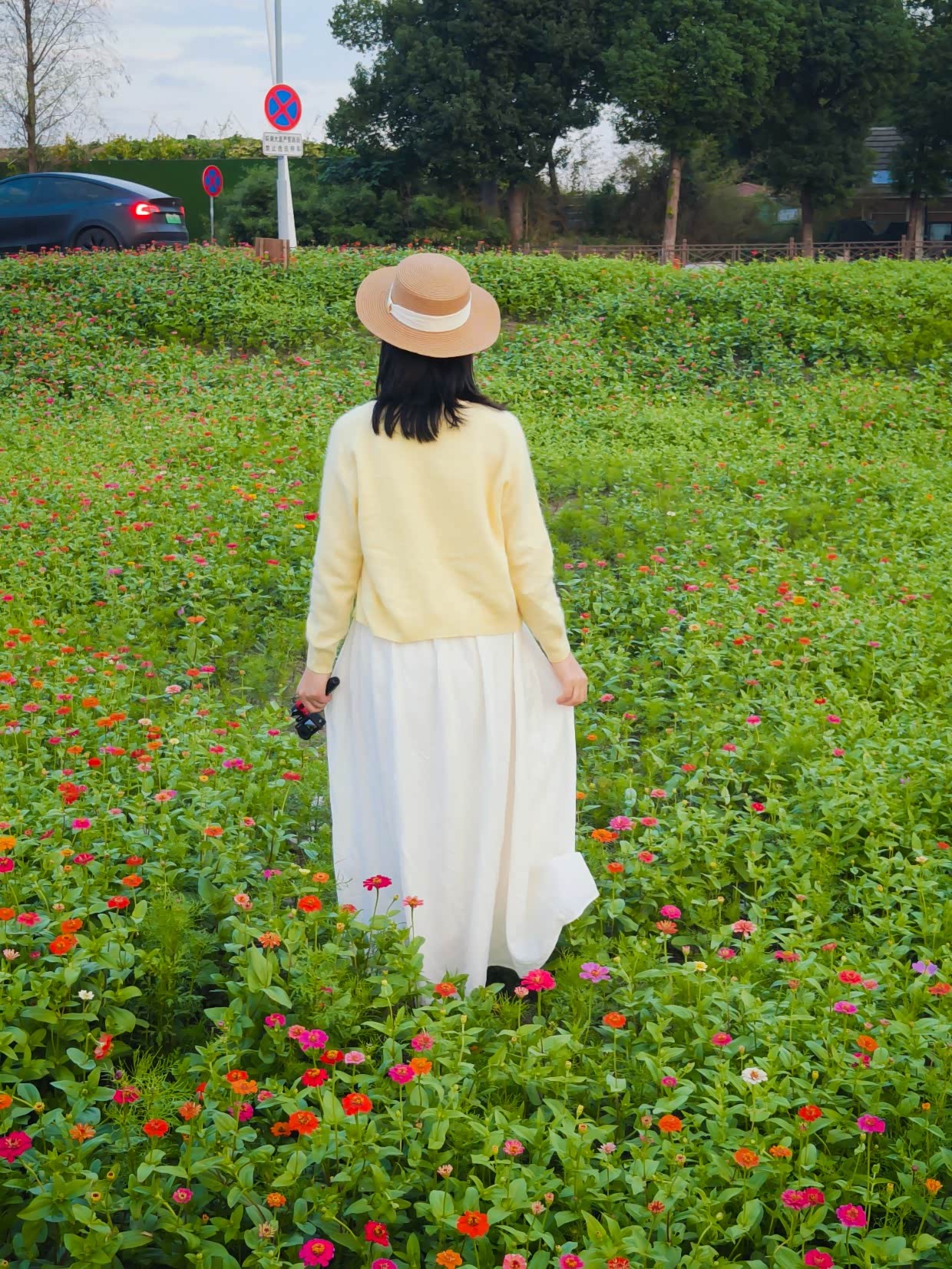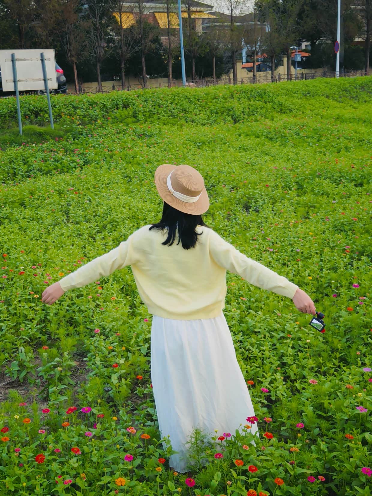 穿着白裙子,再戴个草帽,在花海里拍照也格外的出片。
