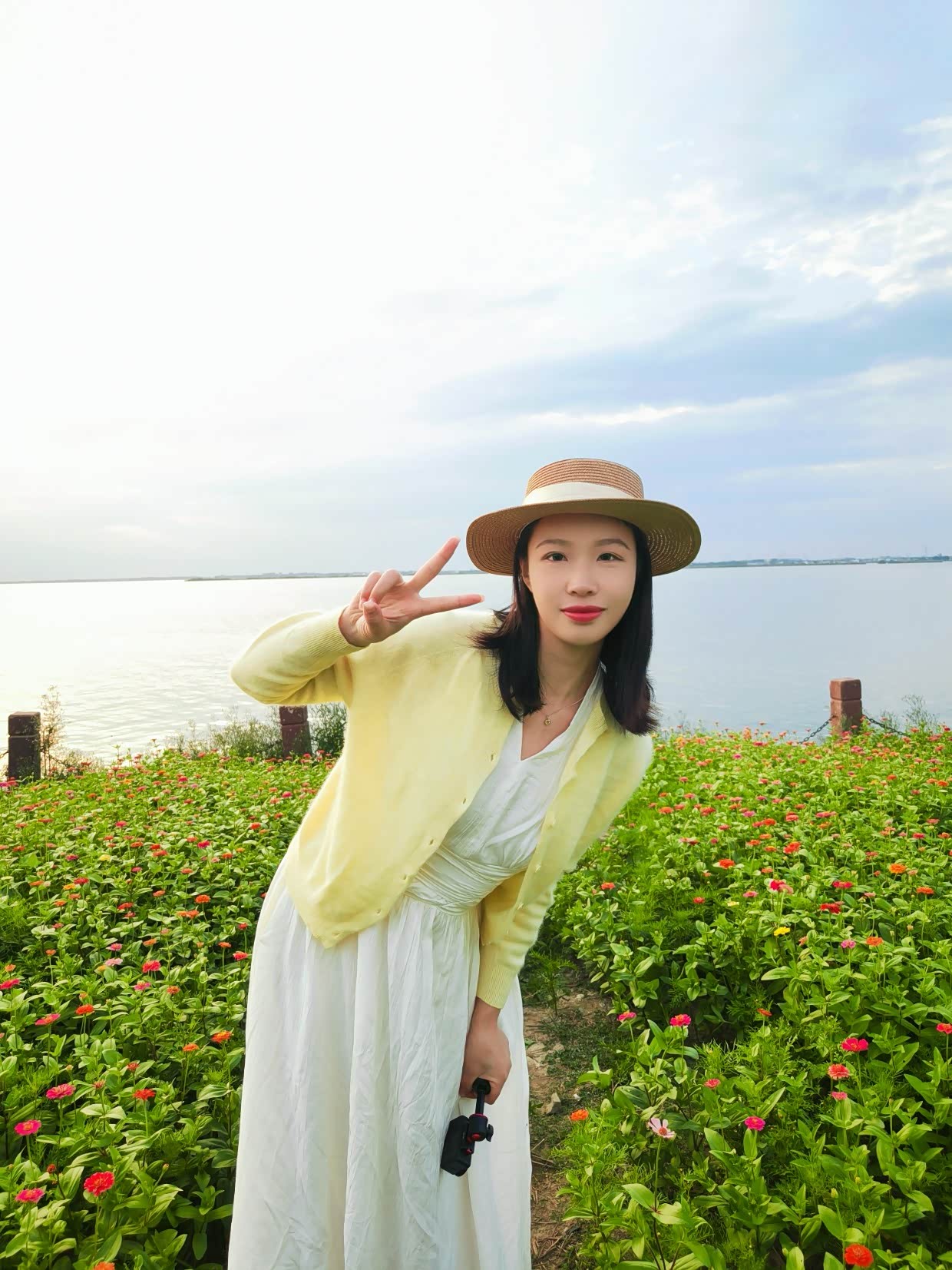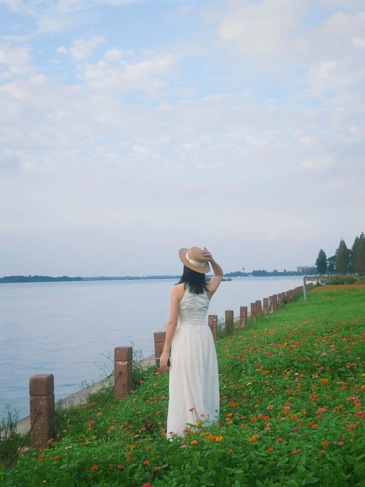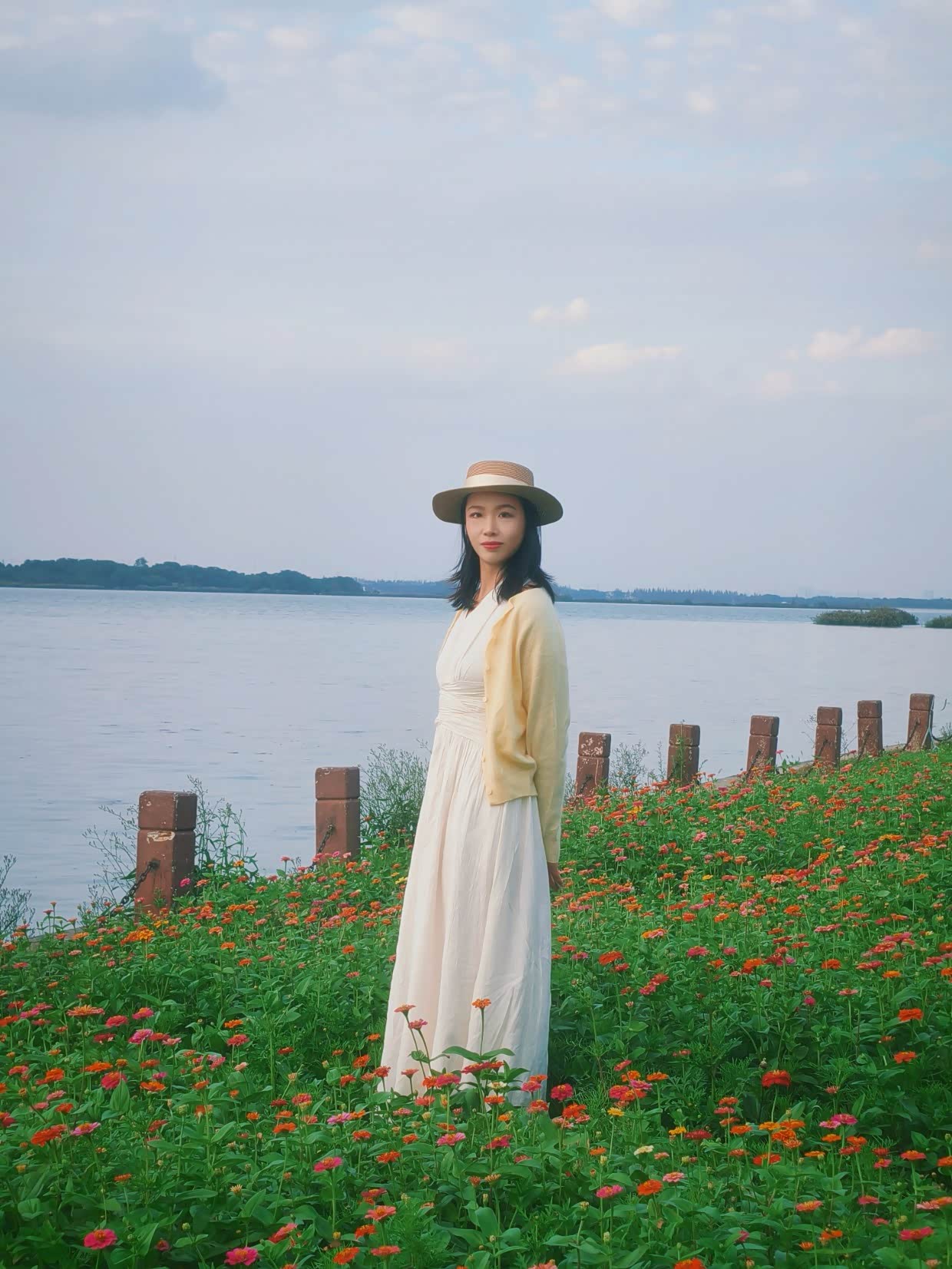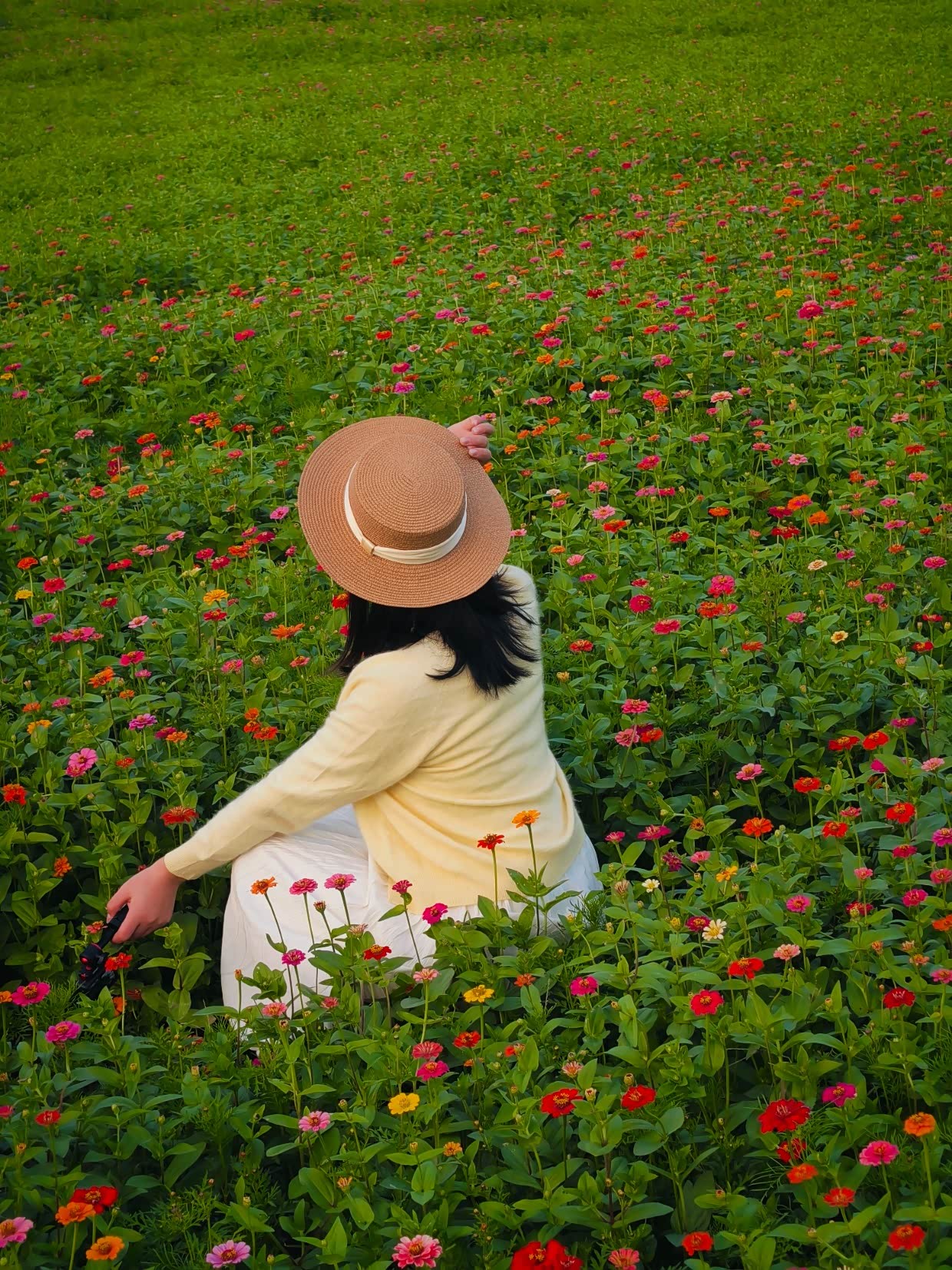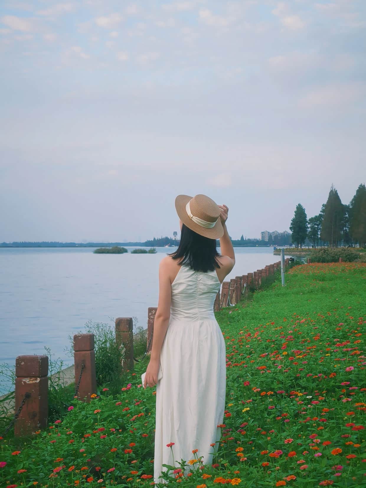 穿着白裙子,再戴个草帽,在花海里拍照也格外的出片。