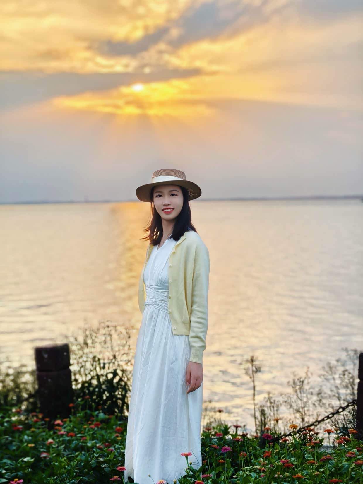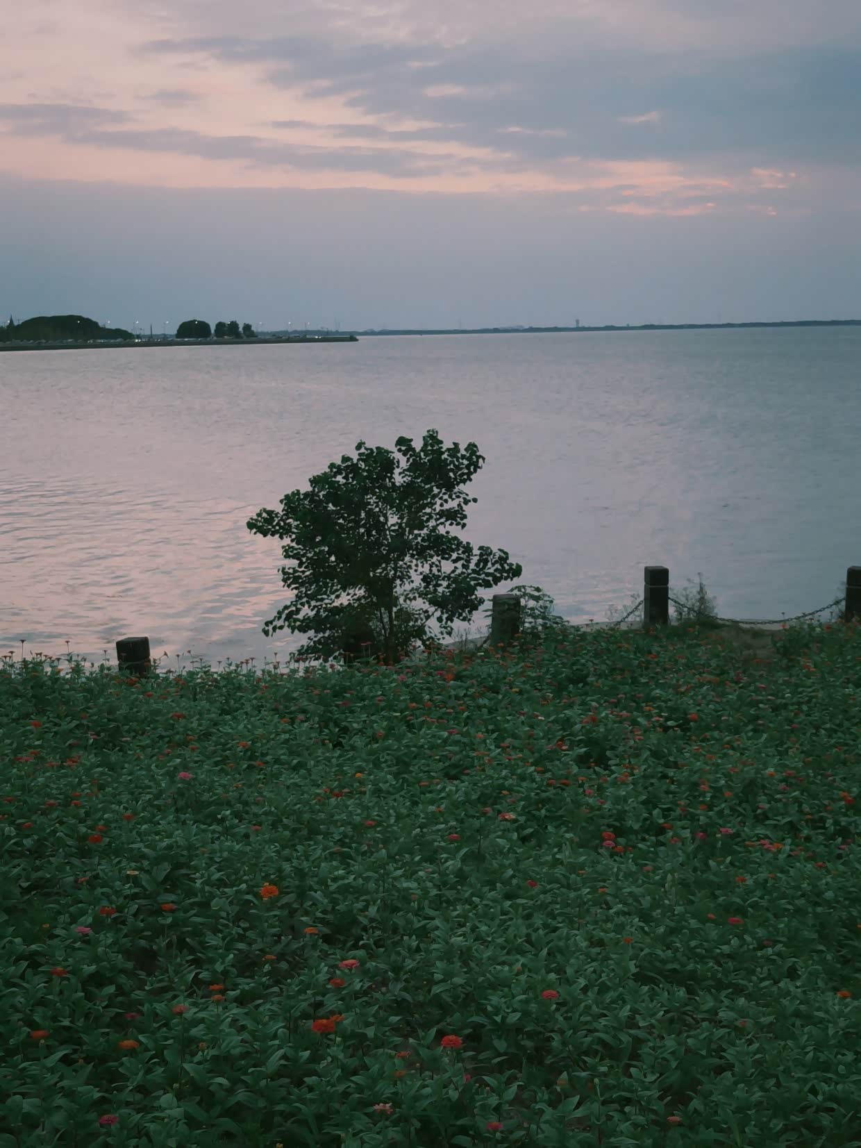 看完花,我们就在湖边找了个地方坐下,等着看日落。秋天的太阳下山比夏天早,阳光也变得温柔。看着太阳慢慢沉到湖对面,心情也特别平静,有时候生活中就是需要些这样安安静静放空自己的时刻。秋风带着湖水的凉意吹过来,不冷,反而很舒服。