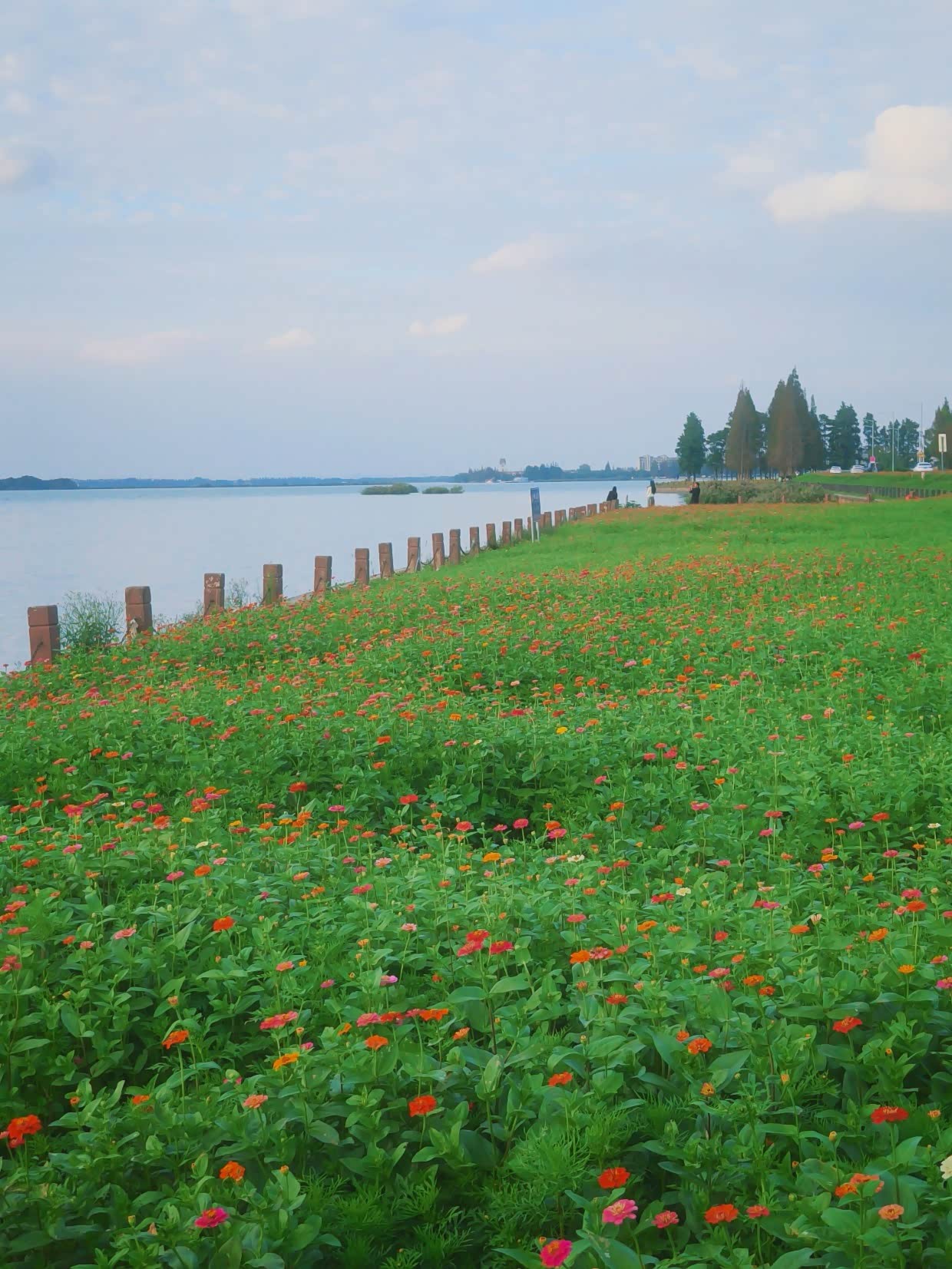 花海位置:导航“淀山湖真爱码头”,如果人很多,就开车继续往前开,开到“半马草坪”附近,人会少很多,也有格桑花海,且观看日落的位置也比较好。