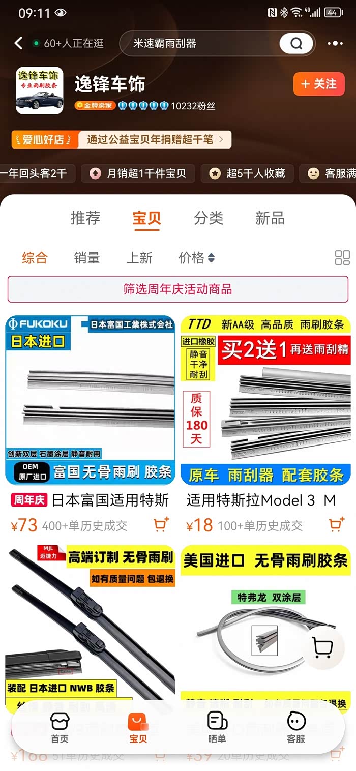 你说的这家店我之前的油车在他这买过普通的胶条,8-9元一根,反正便宜吗,半年一换感觉还行的。但现在价格高的品质还差一些,有点不敢相信的,我还正准换Y胶条在这家买,看样子是不敢买了,感谢兄弟的提醒。