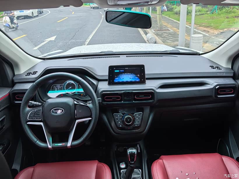 内饰的色调搭配很协和。中控台这块是黑色设计,显示屏,皮座椅,还加了红色配色显得挺年轻化的。按键使用也比较方便。