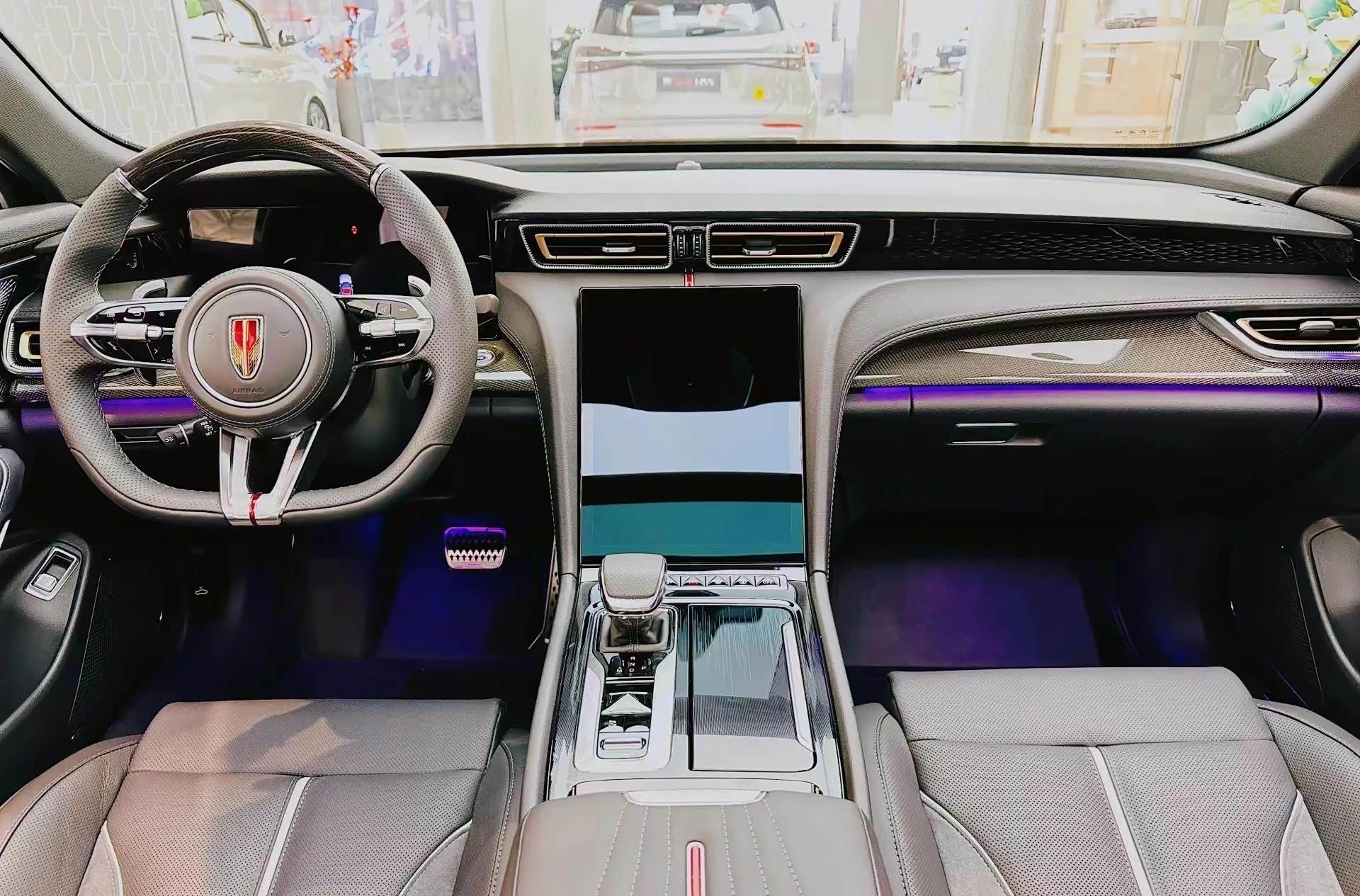 移步车内,则踏入一个刚柔并济的科技座舱。目之所及,“金色羽翼”装饰条横贯于柔软皮质包裹的中控之上,恰似力量与华美的交响。方向盘握感扎实,后方是清晰锐利的液晶仪表,与悬浮式中控大屏构成信息枢纽。运动式座椅以高级麂皮与细腻Nappa真皮包覆,于激烈驾驭中提供坚定的包裹与支撑。每一处碳纤维纹理与精致缝线,都在诉说:这里的奢华,是为驾驭的野心服务的。