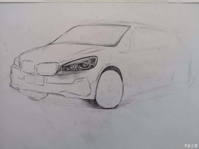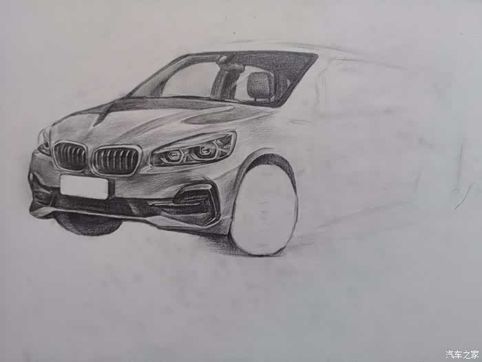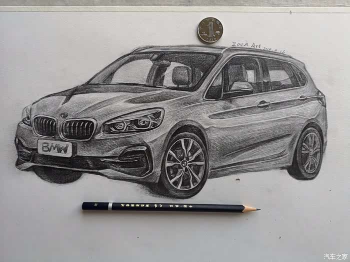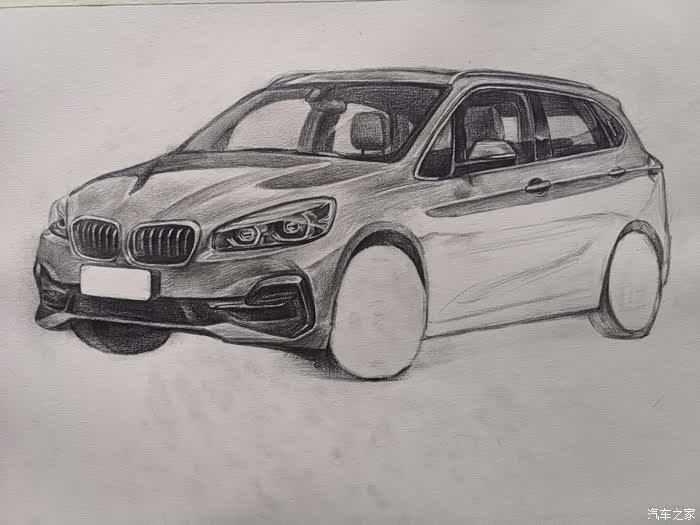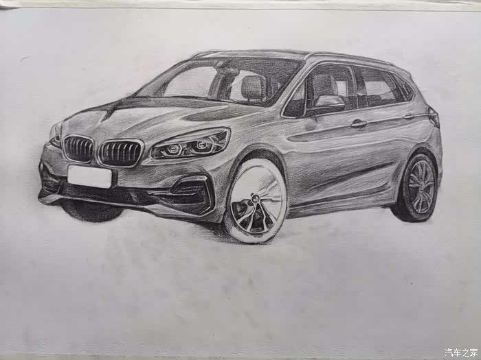但对于汽车的那份热爱丝毫不减!在正式绘画前简单聊一下我对新BMW 2系旅行车的一些认识:旅行车,顾名思义,就是能让驾驶者在周末带上家人或者朋友往城市之外的地方走一走,驶离喧哗,寻觅一番自然静美。作为一种跨界车型,当今国内市面上多由中大型轿车为原型进行猎装改造,过于宽大的车身若出没于早晚高峰的车流间,何止一个“惨”字能够形容
