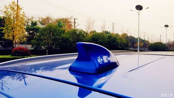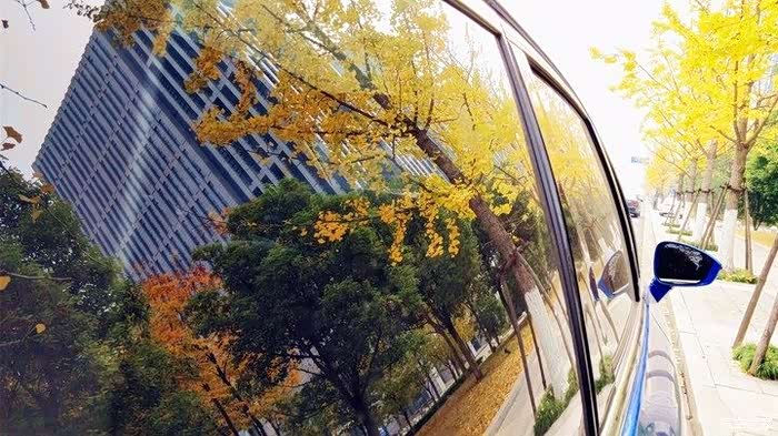 蓝色的车身,跟车后面的黄色树叶很协调啊