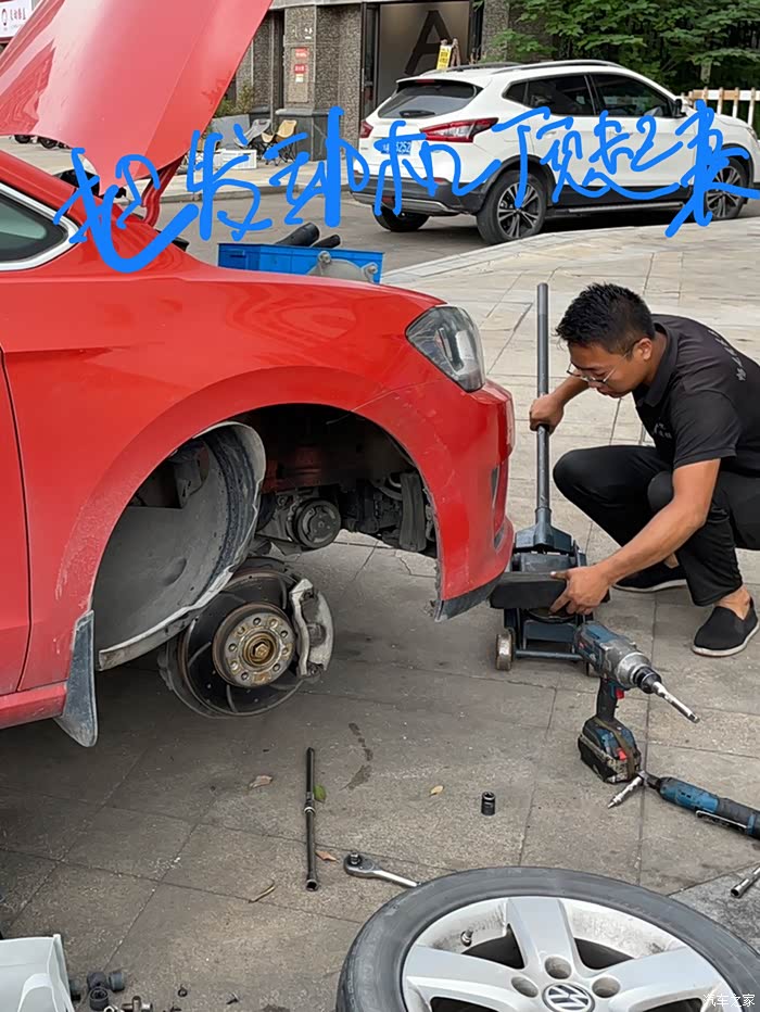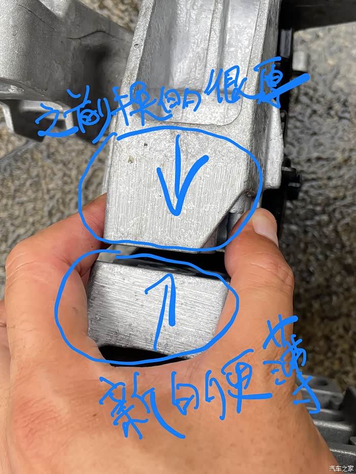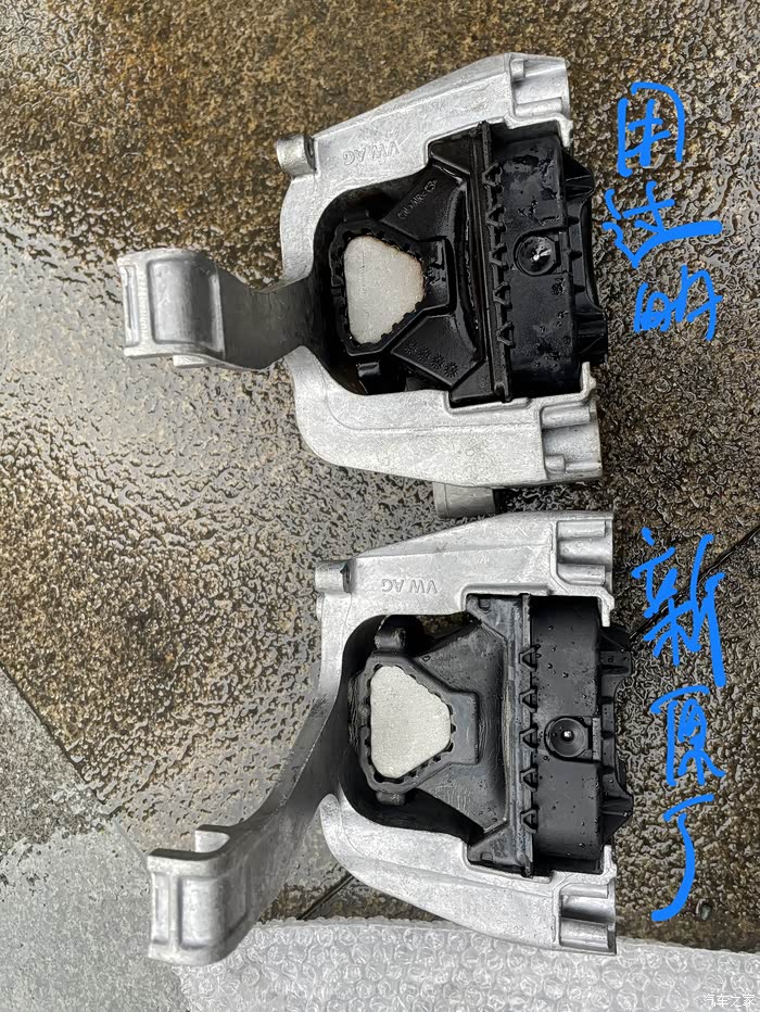 安装完毕 与隔壁的迈腾的机脚对比了 一模一样!!舒坦了!