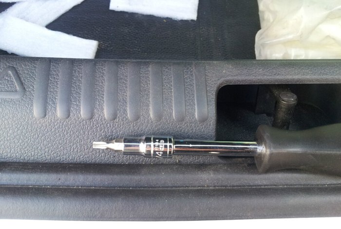 挡泥板是T25六花的花键工具,尾灯螺丝好像是T20,黑色下护板好像也是T20,反正我有一套电工工具,这些都有。