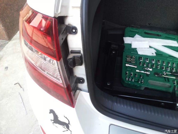 然后是尾杠下面的黑色护板,三个螺丝下掉,螺丝是安在塑料扣上的,下掉后把三个塑料扣也扯下来。