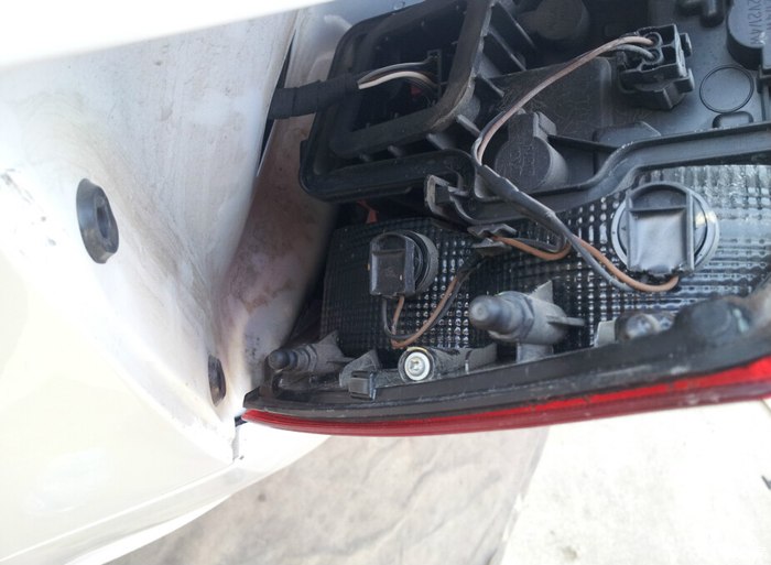 下尾灯从左边,这个黑卡上中下有三个扣,用点暗劲就可以,右边是三个勾子