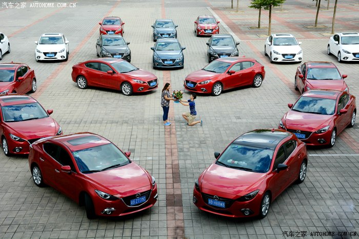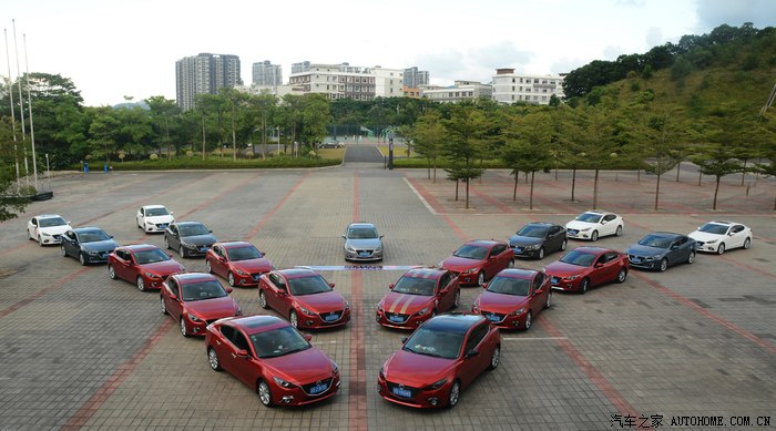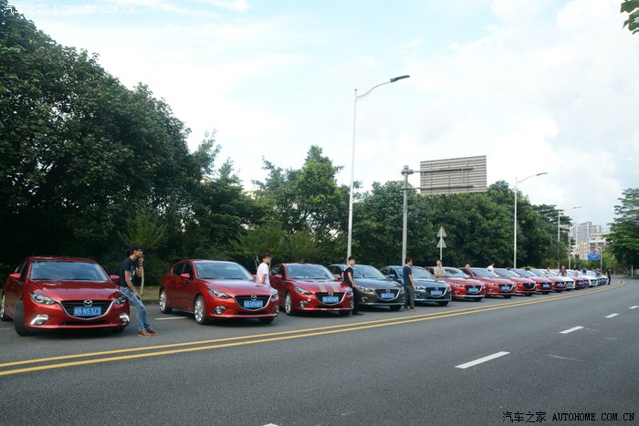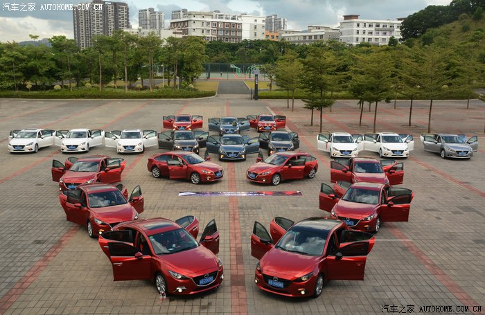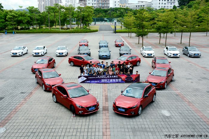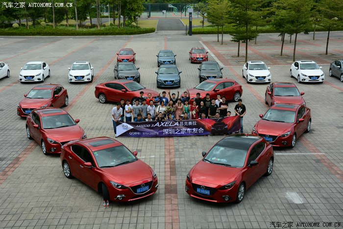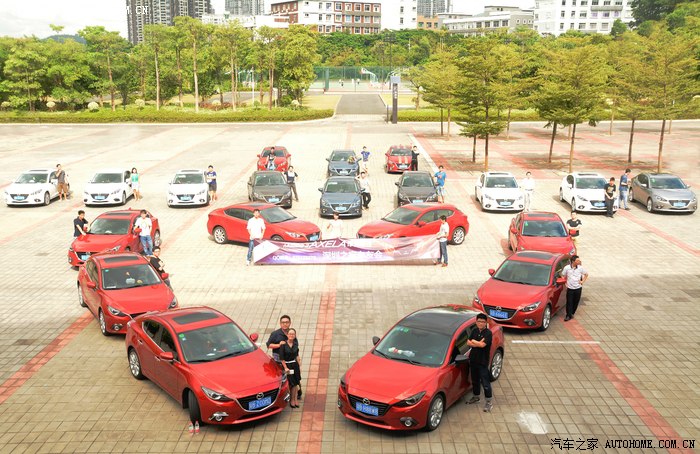 签到:22台昂克赛拉,10台魂动红,7台珠光白,2台星际蓝,2台琉璃棕,1台炫亮银(注:我群已集齐所有颜色,可以召唤神龙了,激情红车主因还没提车而没能参加,黑和灰车主因有事缺席,故相片没有体现,下次聚会补上。)