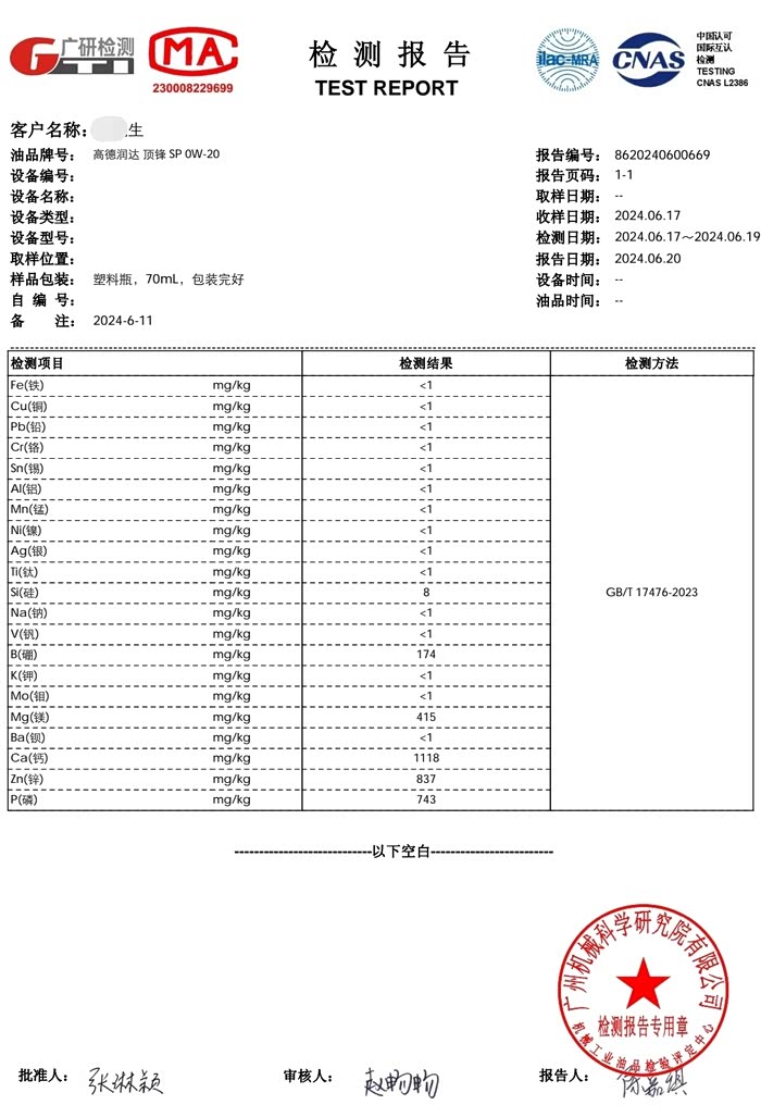 元素分析可以看出一款油抗磨添加剂元素含量、清净分散剂元素含量等,也可以通过这些元素的含量判断机油的真假,假油添加剂含量肯定是不足的,所以含量都很低。