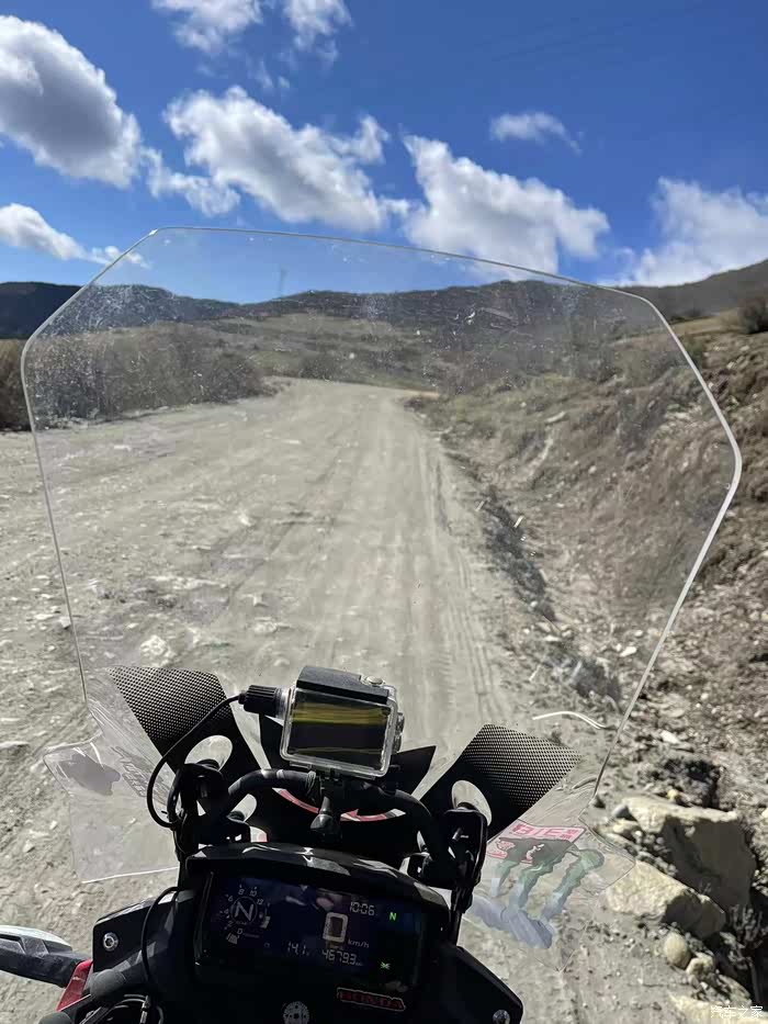而且从山南市向南而下 走琼错线 没想到一连翻越2个5000左右的垭口 尤其是快到措美的那个卡米拉垭口 我记得5300多米 高反不存在的 人已经在高原待了好多天了 车不行 含氧量不够 摩托车高反严重 加上大风 加上天气渐黑。。。一路战战兢兢的从卡米拉垭口下来 没想到最后还有彩蛋等着我们 路上有一段几十米的黄土浮尘 松软的要命 差点摔倒 诶 好不容易晚上赶到措美县城入住 海拔4000多 县城不大 有个地住就行 摩旅人不挑 。。。