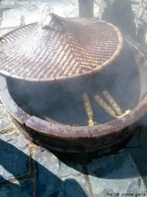 开始煮鸡蛋啦!其实是用蒸汽蒸!我们是在进门前买的,当地的村民来卖,确实是土鸡蛋10元一串,有5个。确实很好吃!