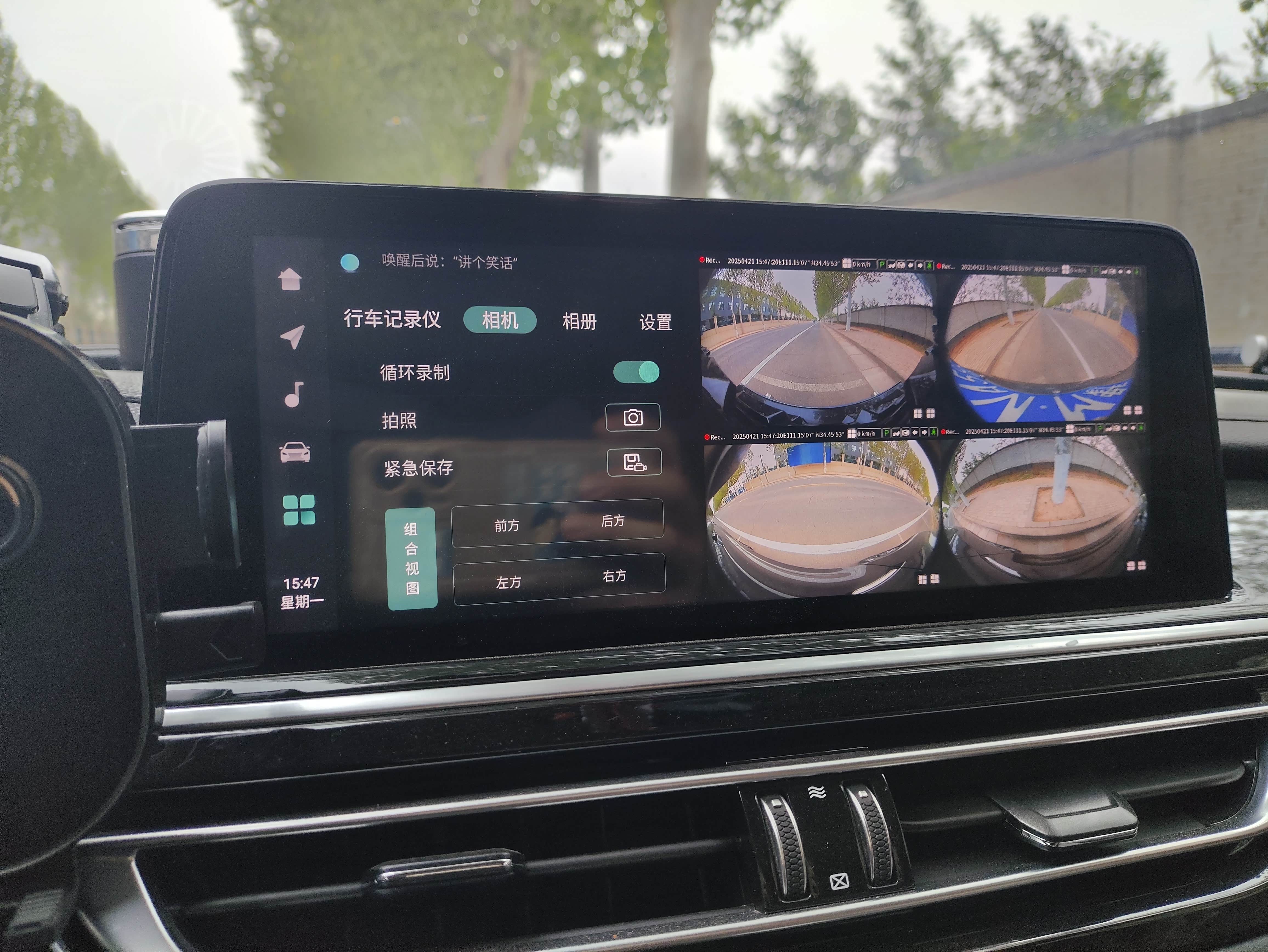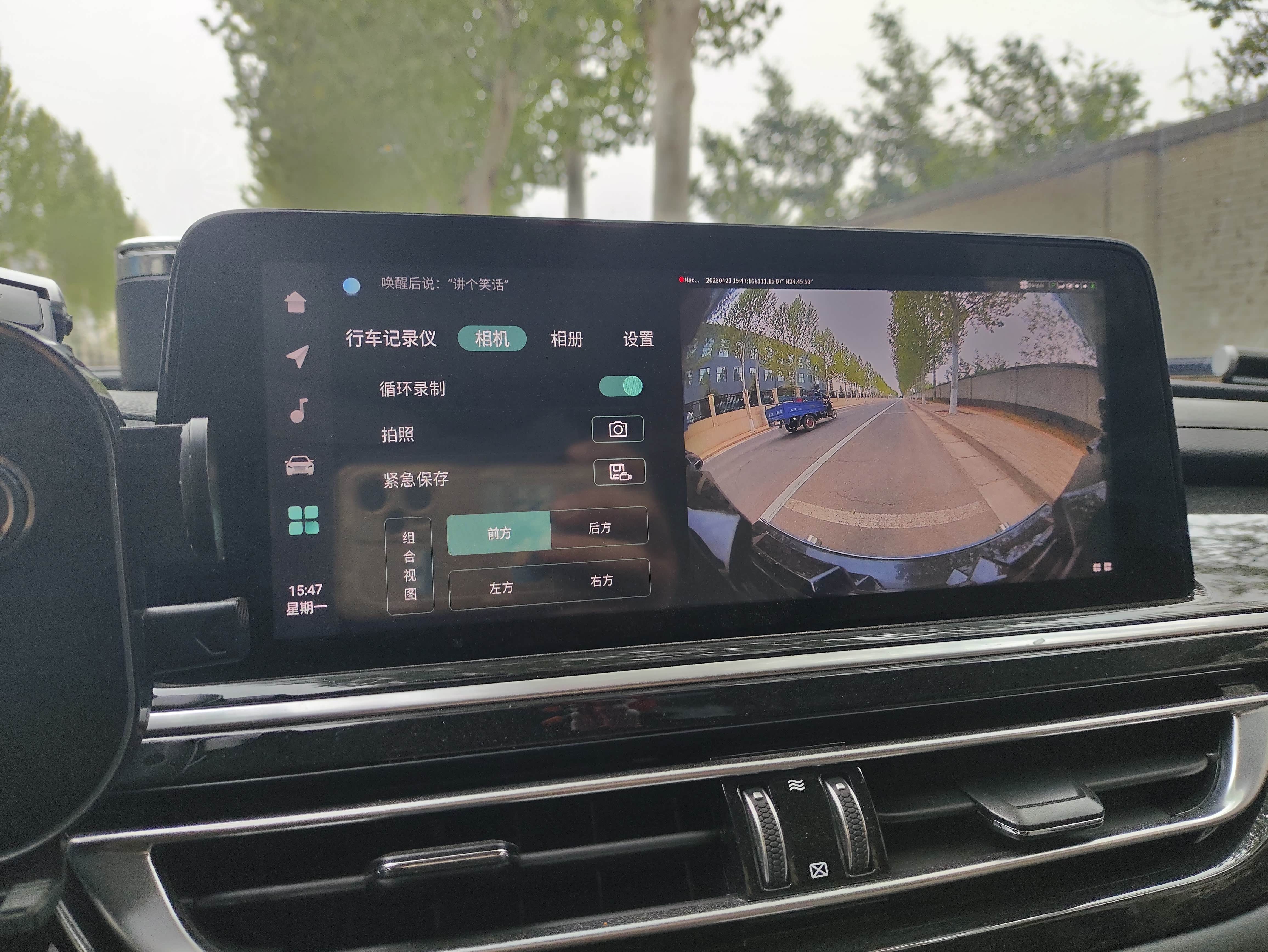 看录像超方便,车机点“环视行车记录”,紧急视频和普通录像都能查。功能设置也简单,中控屏能调画质、分辨率,停车时还能直接按键拍照。开了移动侦测后,车旁有动静会自动录制,小偷小摸都能拍下来。