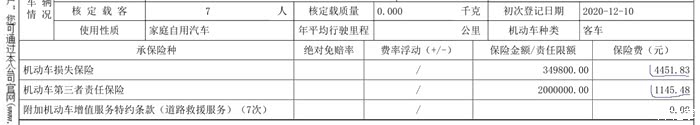 保了三者200万,见了劳斯莱斯咱也不用怕,保费总计6900多。