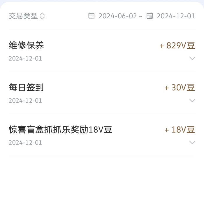 保养结束之后大众APP还会返回一部分V豆,当然这个是根据你的消费金额来发放的。如果你经常参加大众的各种活动,V豆比较多,也可以完全用V豆来抵扣保养。