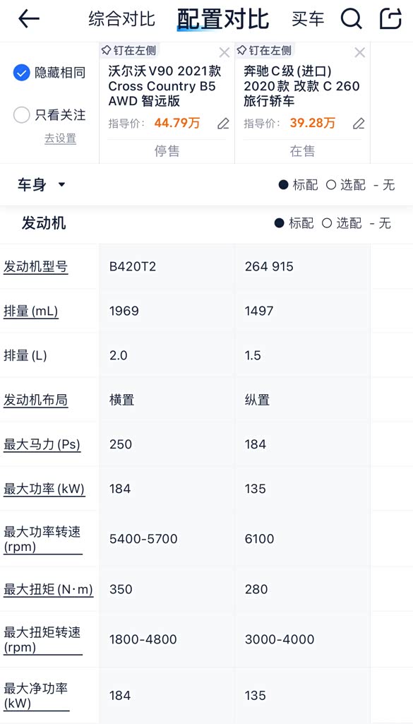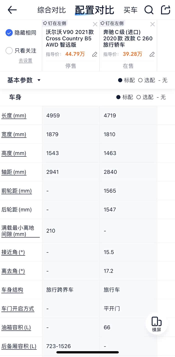我个人买车的大前提就是先看预算,接着看喜欢的车子类型,最后才是确定具体的品牌的哪款车子。购车总预算确定好40W左右(所以就不要问我为啥拿C旅和V90cc比,而不是拿A6 Avant了),车子类型确定好是旅行车,那么下面的工作就是确定品牌和具体车型了。经过筛选后和考量后,我选择了奔驰2020款C260旅行和2021款V90cc智远做对比,主要从这三个方面来做比较: 1. 外观和内饰,2. 动力和空间,3. 安全配置。