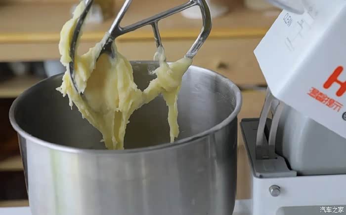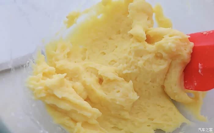 有厨师机打蛋器的可以多打打,快速搅拌,打到黏稠上筋的感觉。没有设备的宝宝尽情的用刮板去压拌它。