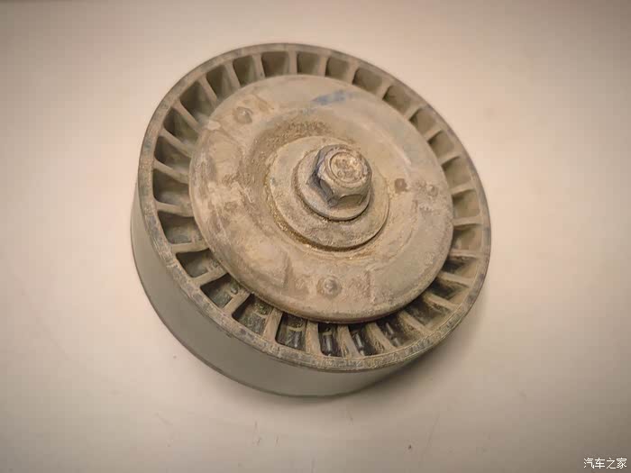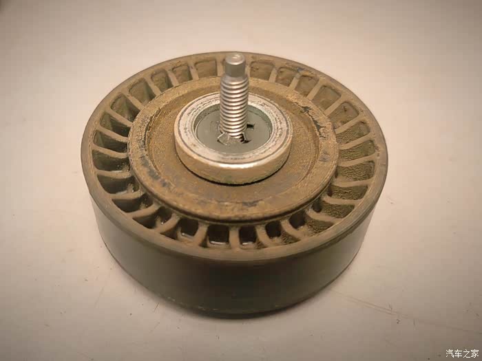 拆下来的惰轮和张紧轮都很新,只是有了一层灰。