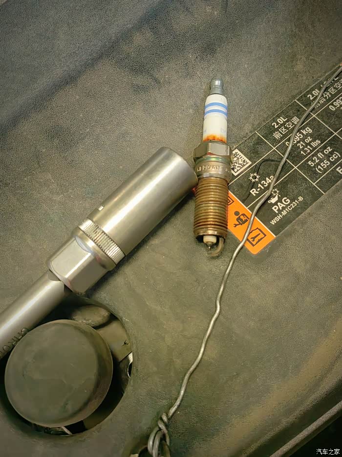 拆下来的博世火花塞,虽然能用,保险起见,还是换了。