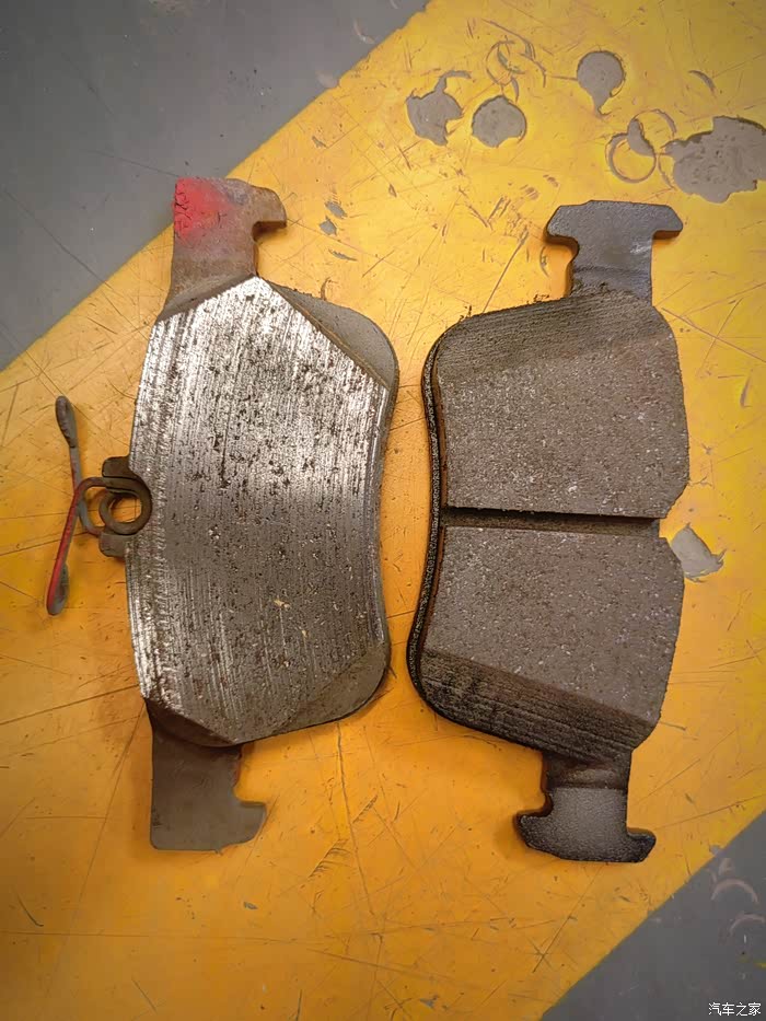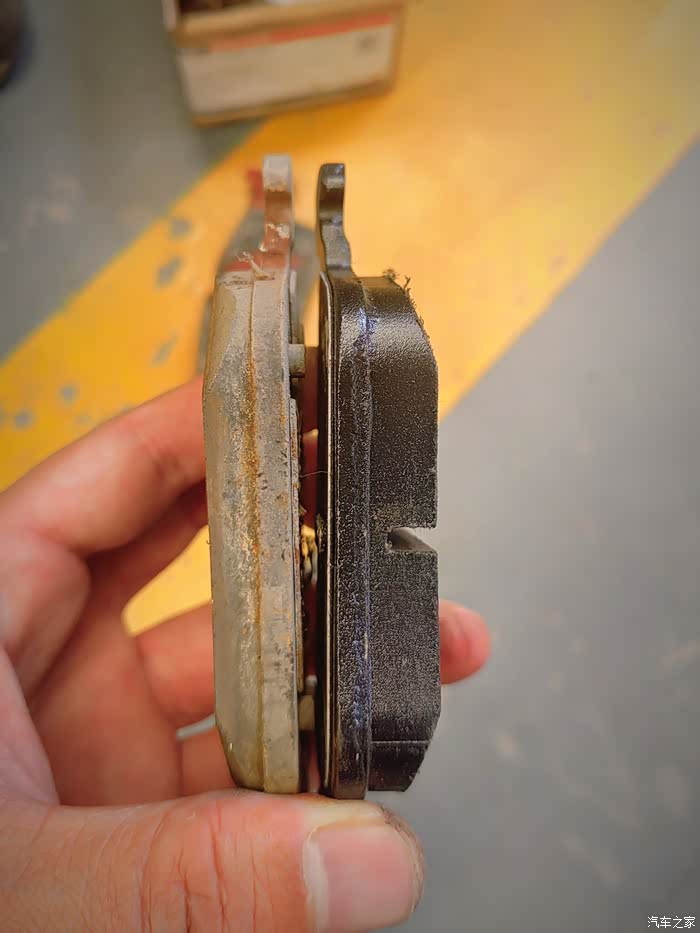 对比了一下厚度,我感觉还剩三分之一,磨掉了三分之二,感觉换早了,应该还能用,之前在外面换轮胎的时候,维修师傅也提醒我换刹车片了,特别是后轮,前轮的还好,不用换,所以这次就给换了,拆下来后看感觉还能再开几千到一万公里没问题。所以,各位车友,还是得自己看,根据车况,感觉差不多了再换,不拆下来,我也不知道看哪里。