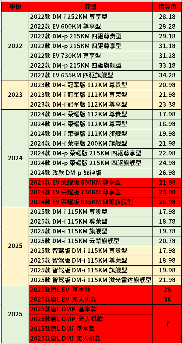 迪粉们!唐L EV版预售价格已经出来了,28~36万!作为一个“伪迪粉”和参考上述历年唐的配置&价格,大胆预测一波DM-i和DMP版本的价格!毕竟,谁不想拥有一台又省油又带劲的唐L呢?