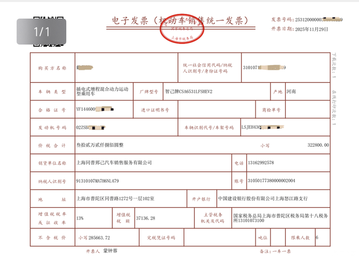 【提车过程】:11-4小订,11-18转大定并锁单,4S店说锁单后还需要等3天才能排产,不过估计月底左右能交车。而后办理贷款,智己提供0首付60期分期贷款,前2年免息,后三年年息2.99%,总利息28955.16,每月利息804.31元。28号来电话说车到了,我没空过去,让工作人员拍了整车视频,看了下没问题就确认了。然后就是银行放款,开票,提车。提车时候,由于近期智己比较热门,LS6、LS9提车单子比较多,原定的提车时间要延后,我不愿等,再说提车就是个仪式,拍个照,送束花,也没啥意思,让4S店多送了2个杯子就算补偿了。然后就是选个良辰吉日,去办理上牌手续。