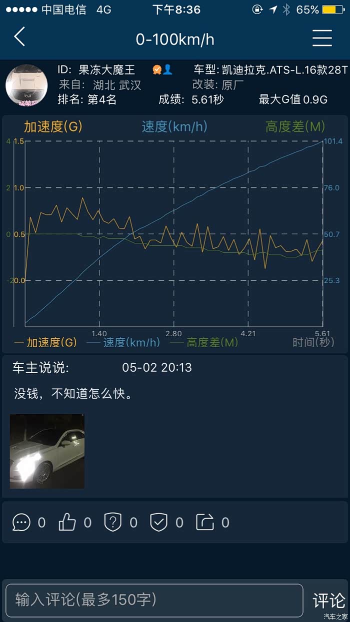 4:尽量选择红绿灯从静止状态下开始干,咱们优势就是20-120这一段,在行驶中突然开干其实不是我们的优势,特别是后段,哪怕是1阶的320后段都是不输ATS的,毕竟我们这个变速箱。。。。你懂得。