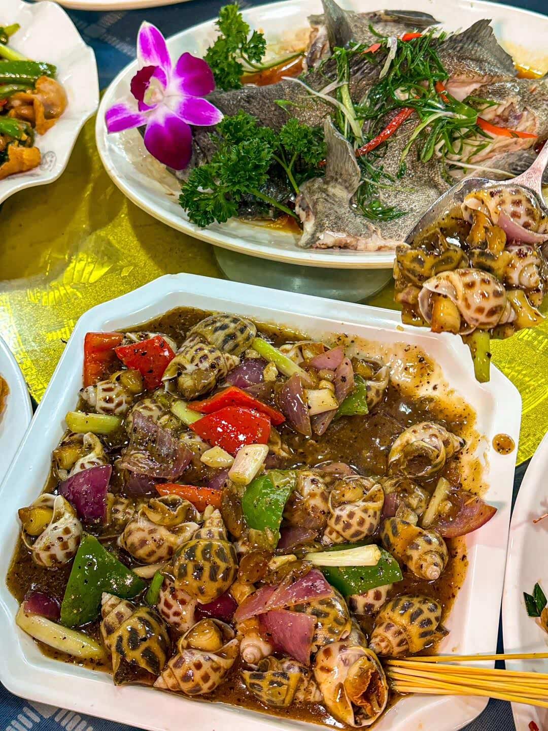 餐饮建议:鱼排的清蒸海鱼、白灼虾必点,排档的姜葱炒蟹、夜钓的现烤鱿鱼别错过;