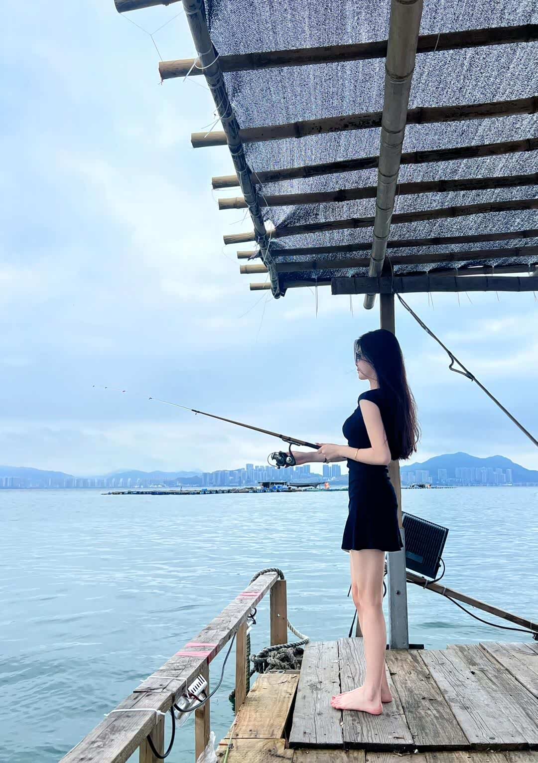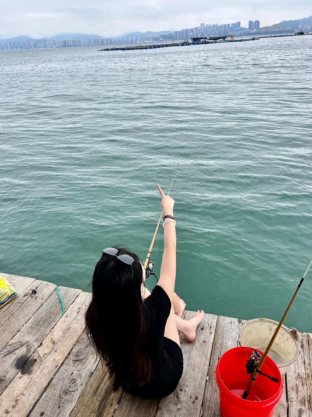 鱼排主人拿来钓竿和虾肉饵料,儿子握着儿童钓竿有模有样地甩钩。妻子在遮阳伞下铺好野餐垫,摆上水果和零食。女儿刚钓上一条小黄鳍鲷,就举着喊爸爸妈妈快看,鱼排上的人都笑着鼓掌。