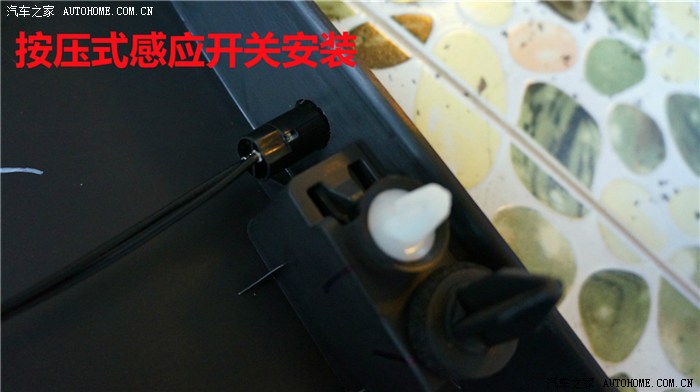 安装按压式感应开关(按下断开,弹起接通),接线太简单了,用脚后跟想都知道,就不啰嗦了。
