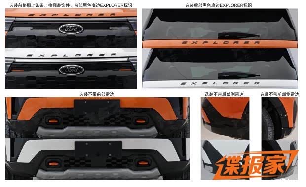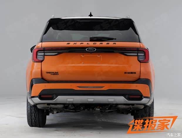 在车身侧面,福特探险者Timberline采用了橙色与黑色的双色车身设计,并在C柱部分粘贴有Timberline版本的徽章以展示新车的独特性。车尾部分,新车配备了一个车顶扰流板,两侧C形尾灯由一个黑色的装饰面板相连接,形成贯穿式设计,后备厢左下角也标有“Timberline”的文字信息,后包围采用了分层式的设计,银色的后护板则展现出了新车独特的越野属性