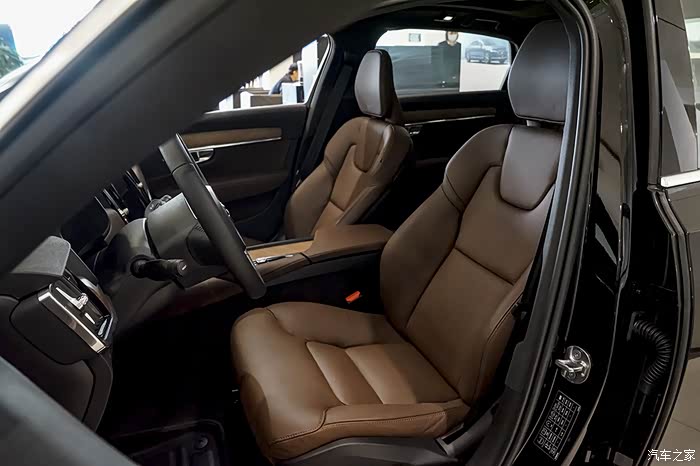 对于车主来说,座椅的舒适性尤其重要。沃尔沃S90在座椅用料上豪不吝啬,低配车型采用仿皮质符合人体健康环保材料,而顶配与次顶配车型则采用高级打孔Nappa真皮面料,触感细腻柔软且透气性佳,内部填充物软硬适中,坐在上面回馈给人的弹性饱满度十分充足,不是那种软踏踏的感觉;辅以人体工程学座椅设计的理念,各处能贴合人体曲线的自然角度,包裹性与支撑性都表现出色。顶配和次顶配车型还支持加长的腿部承托设计,对于个头较高的大长腿司机来说是非常的友好,大腿部也能得到更好的承托性,即使是长途跋涉行车也不会感觉到乏累。