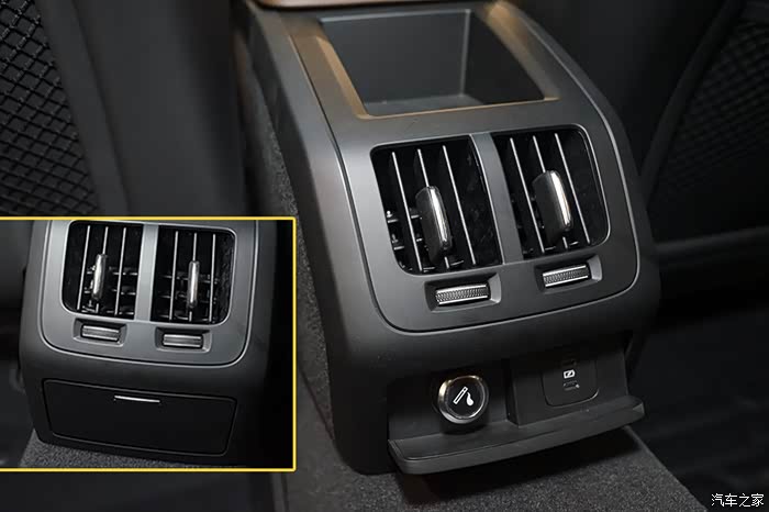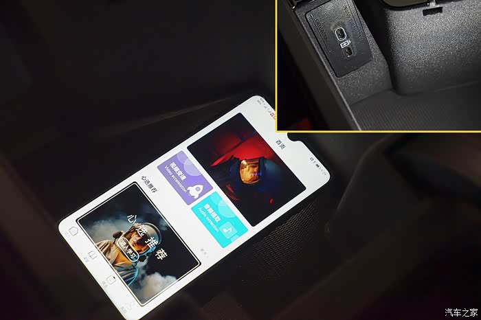 扶手箱内部储物能力一般,放些随身零碎物品不成问题,内置2个Type-c接口,方便手机充电使用。