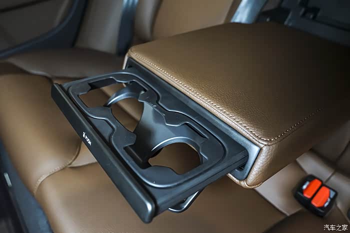 拉上盖板可以安置手机,顶配、次顶配车型支持手机无线充电功能;拉开实木卷帘盖板是杯架,并设有限位,实用性显著。