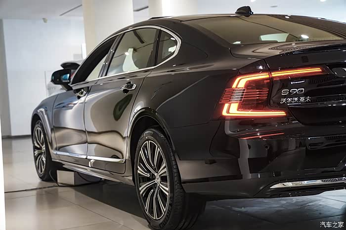 车侧,得益于超5米的车身长度,车身显得十分修长、舒展,且拥有低趴的车身姿态,造就了沃尔沃S90大气且优雅的气场。