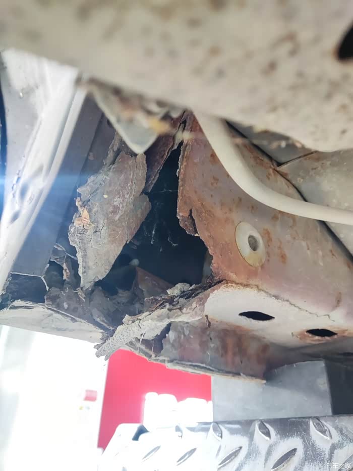 我觉得都已经行驶将近20万公里了,这辆车的使用年头也不短了吧,所以下边梁有爆漆和生锈,这不算什么大问题,可以考虑找地方把车升起来做一下除锈补漆,其实不做也没什么问题的。