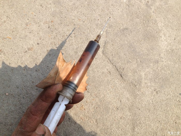 你瞧瞧,里面制动液已经浑浊。用针管抽出来。