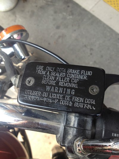 首先从制动泵上盖的标示,看清楚你的需要用DOT3还是DOT4的制动液。下面这车要求用DOT4D。