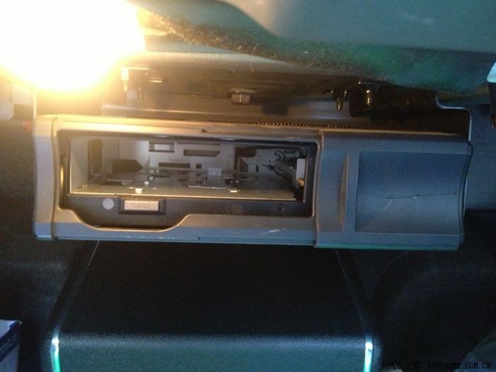 这个是副驾驶手套箱里的放导航光盘的地方,这还是带照明的,细节设计不错,这一个光盘60,有点坑爹,不过导航确实不错。
