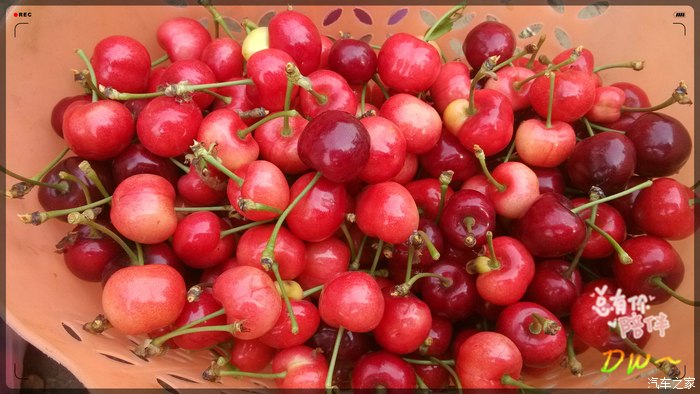 这一篮是我摘的,红得发黑是最甜的,水份又多,我是一边摘一边吃。