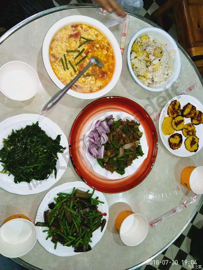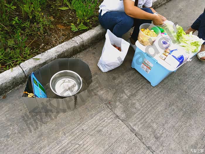 我们从武汉出发时买了一些面食和菜蔬,带了便携锅炉,我们不是第一次在服务区做饭了,所以轻车熟路。