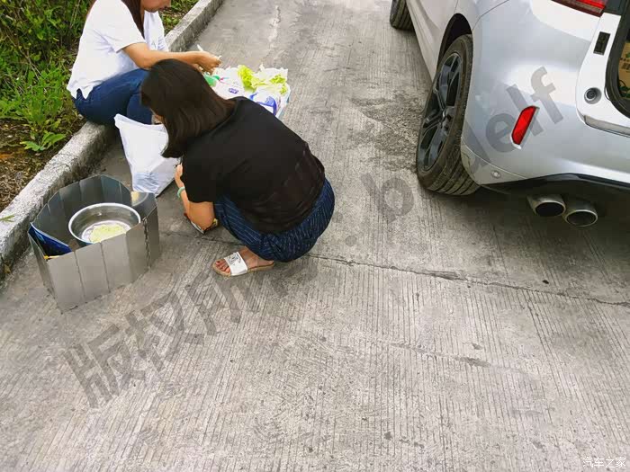 这是我和同事嫂子在准备午餐。巴东服务区是最后个服务区了,出了这个服务区,再想在路边做饭是不可能了,因为省道山路是不能在路边随便停车的。