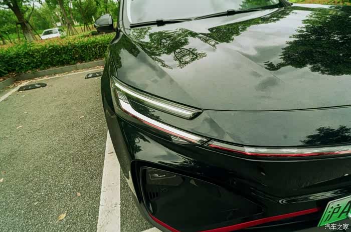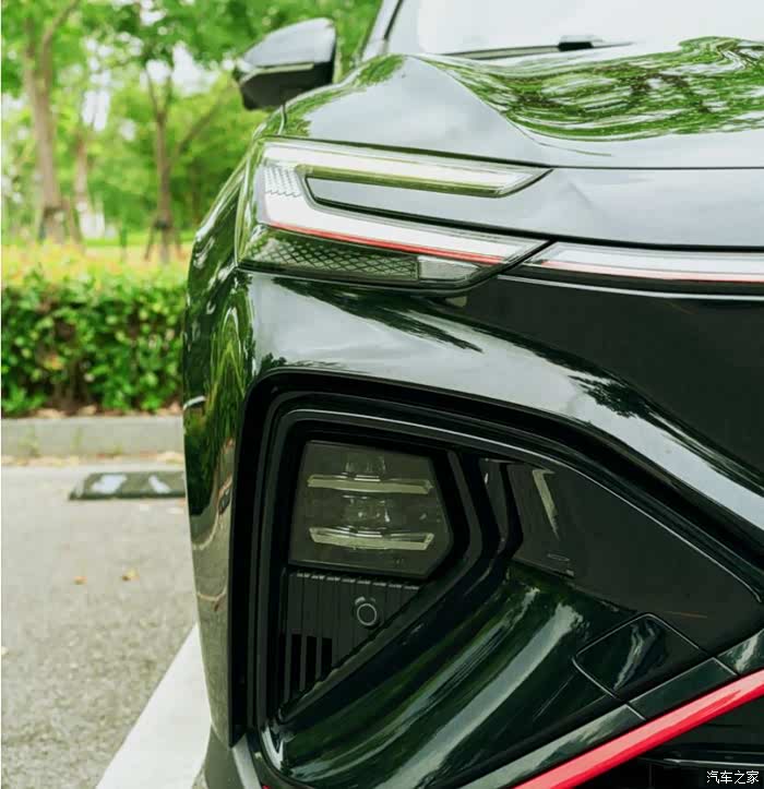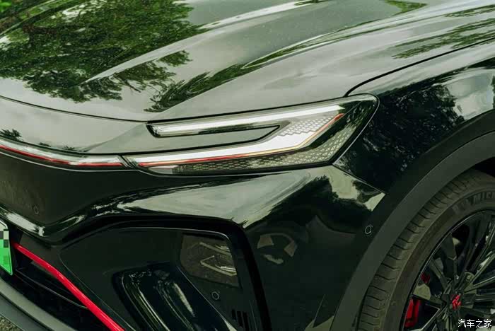 媳妇在网上看到我发过去的车型照片的时候,就觉得黑武士版的车型看上去很有科技感,但是在细节处也很有高级感。比如它整台车的外观线条十分动感,前脸的上下两个部分刚好构成了类似字母X的视觉效果,而且车头灯的线条十分凌厉,有点像宇宙飞船的感觉。