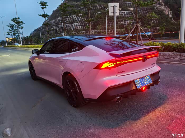 长安UNI-V的亮点之一,或者说是我个人比较喜爱的点之一就是车灯。日行灯就是我最喜欢的灯光,搭配上冲刺般的前脸,日行灯就有点冷酷的感觉了,再加上电动尾翼,帅气十足。